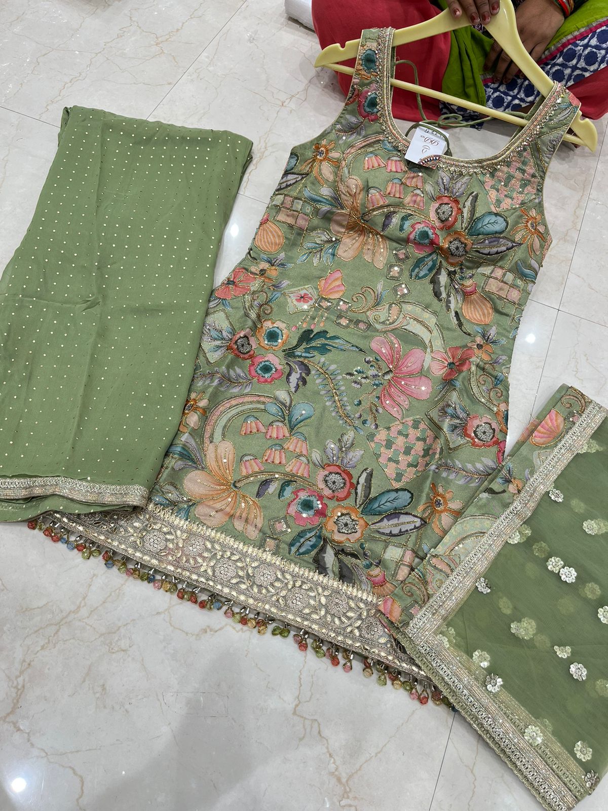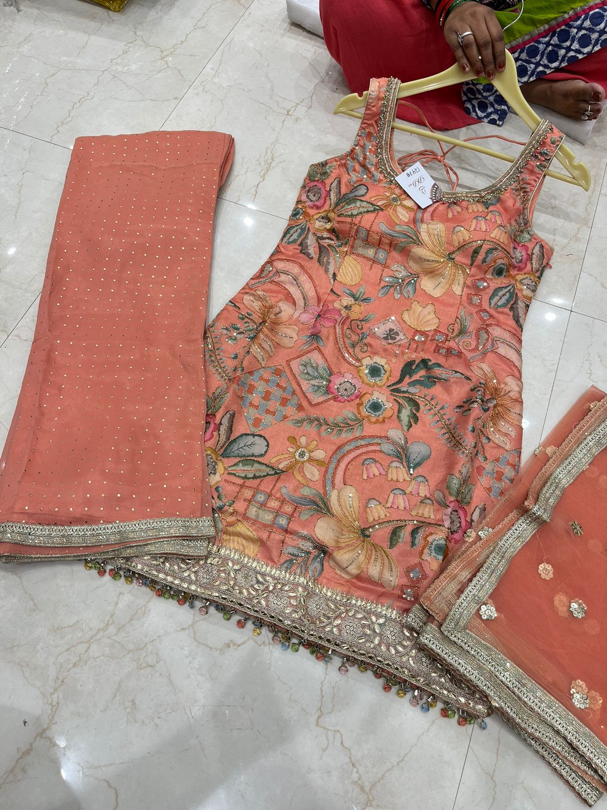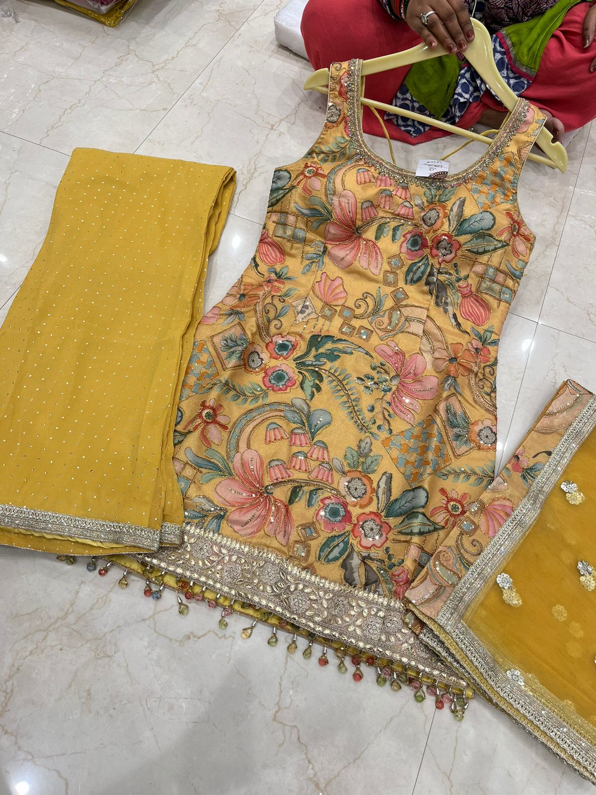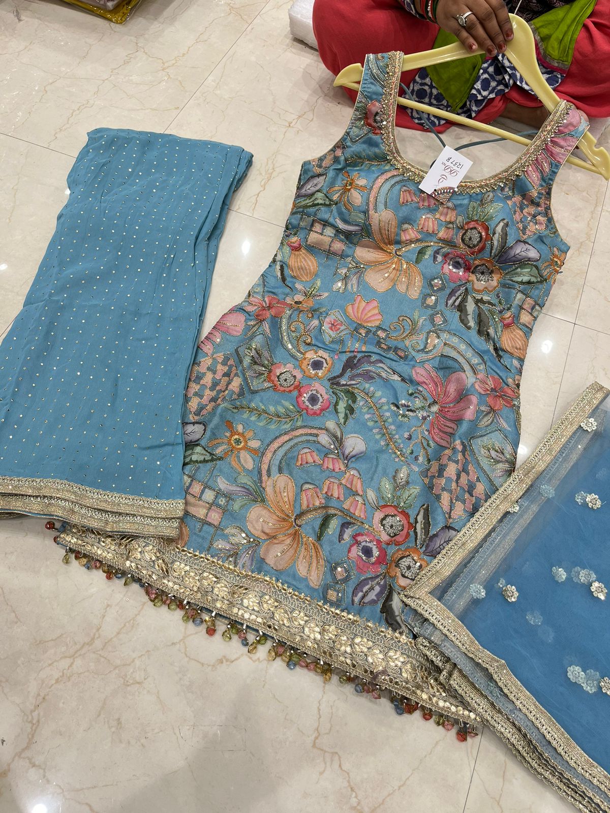 - Amazing Multi Color Embroidered Shirt with All Over Embroidered Palazo Bottom.