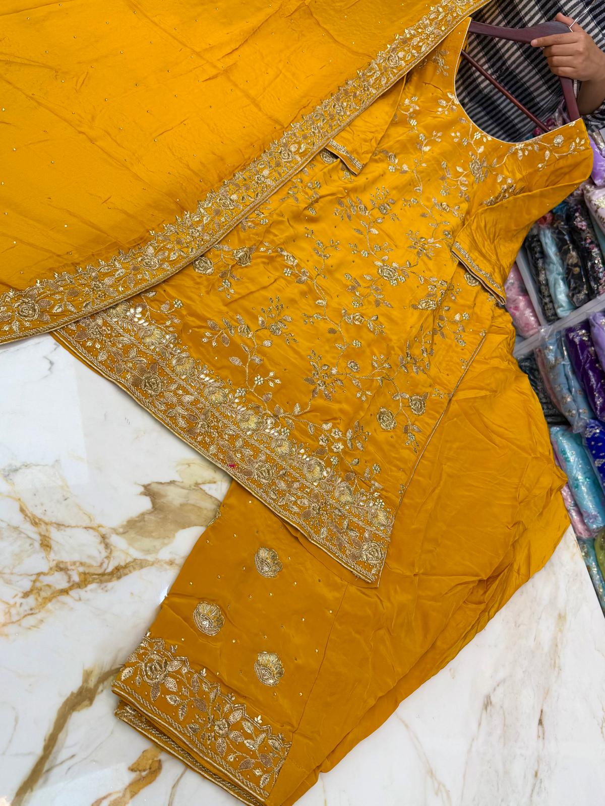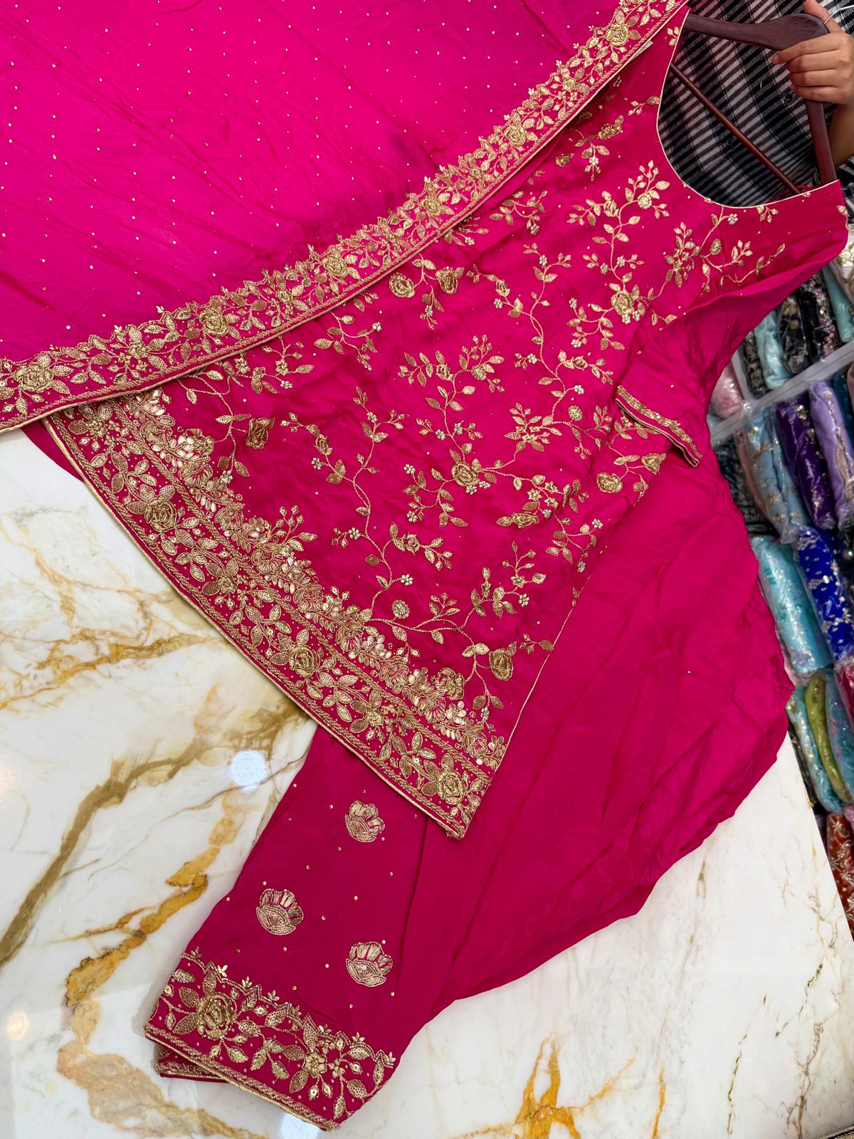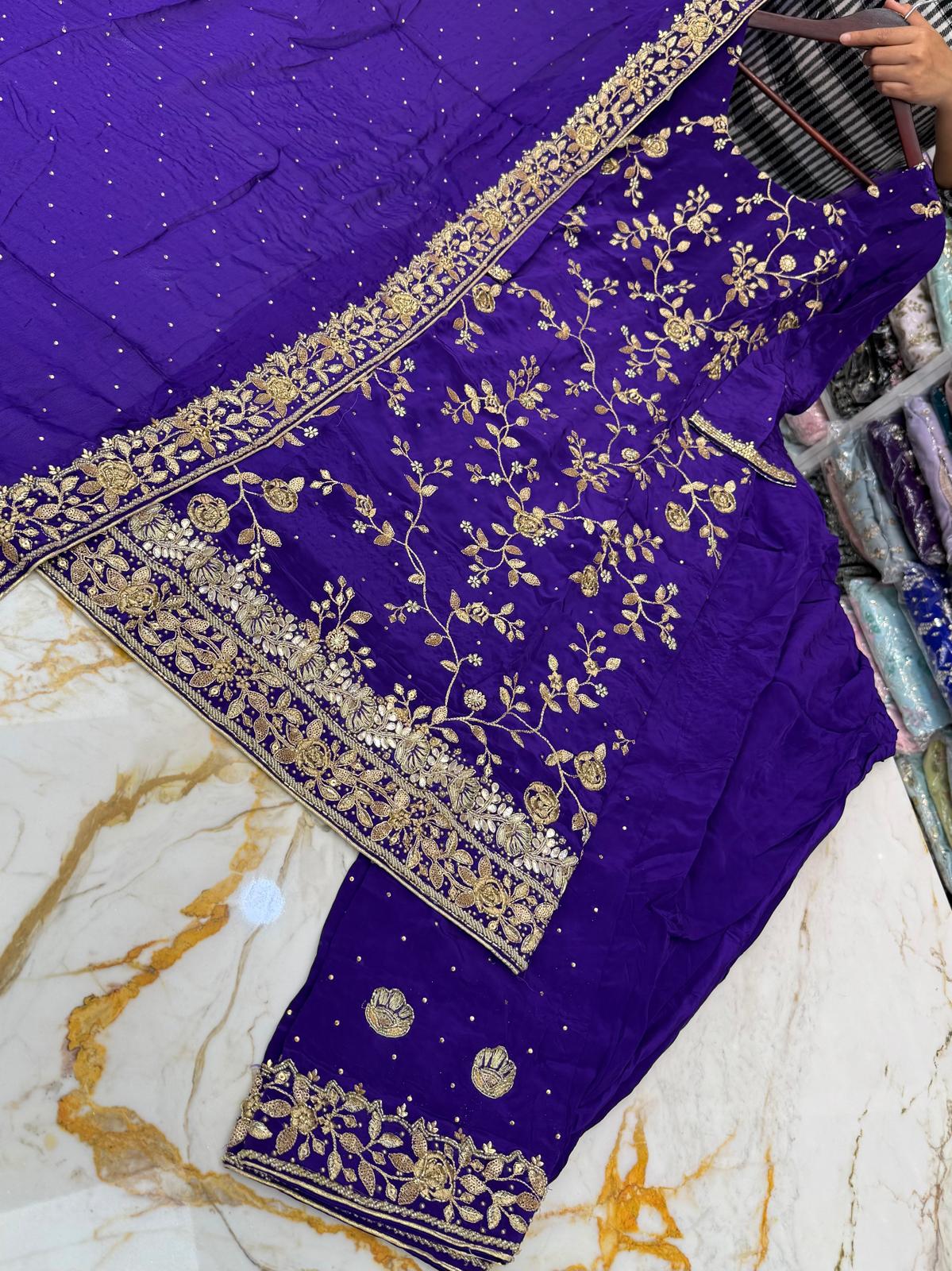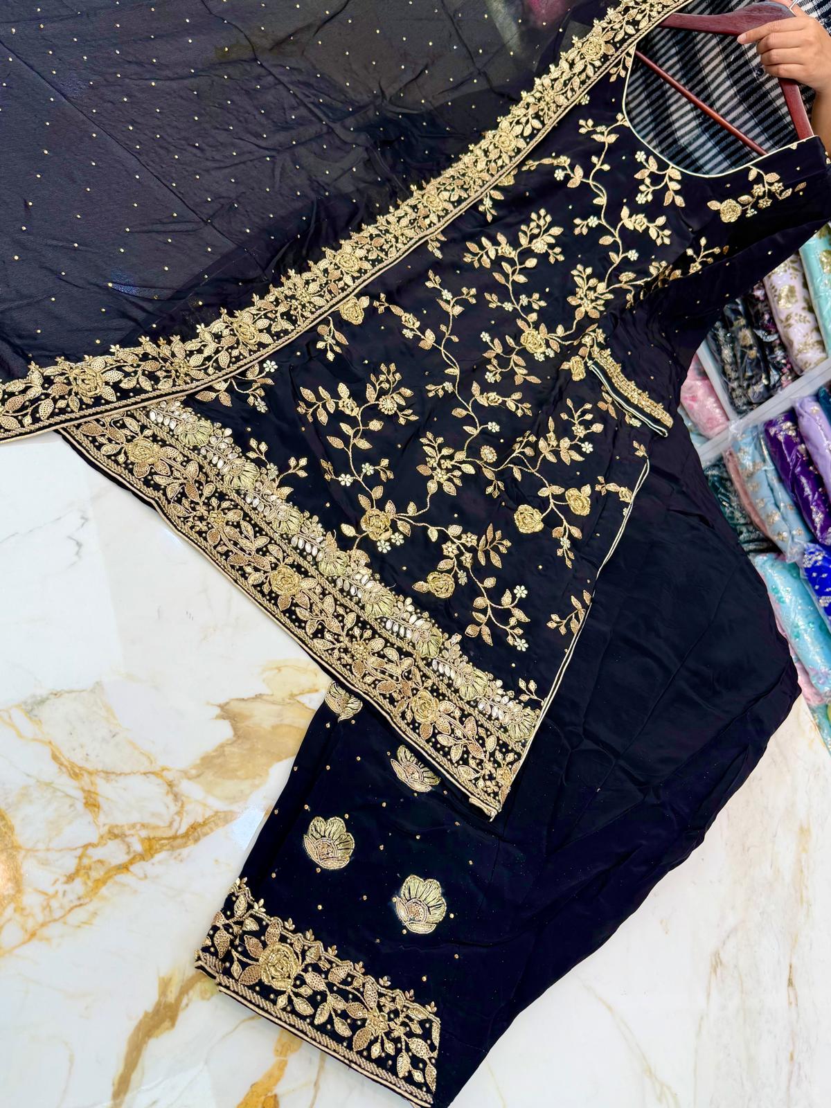 • Amazing Pure Crepe Embroidered Long Sleeves Shirt with Embroidered Patiala Salwar Bottom.