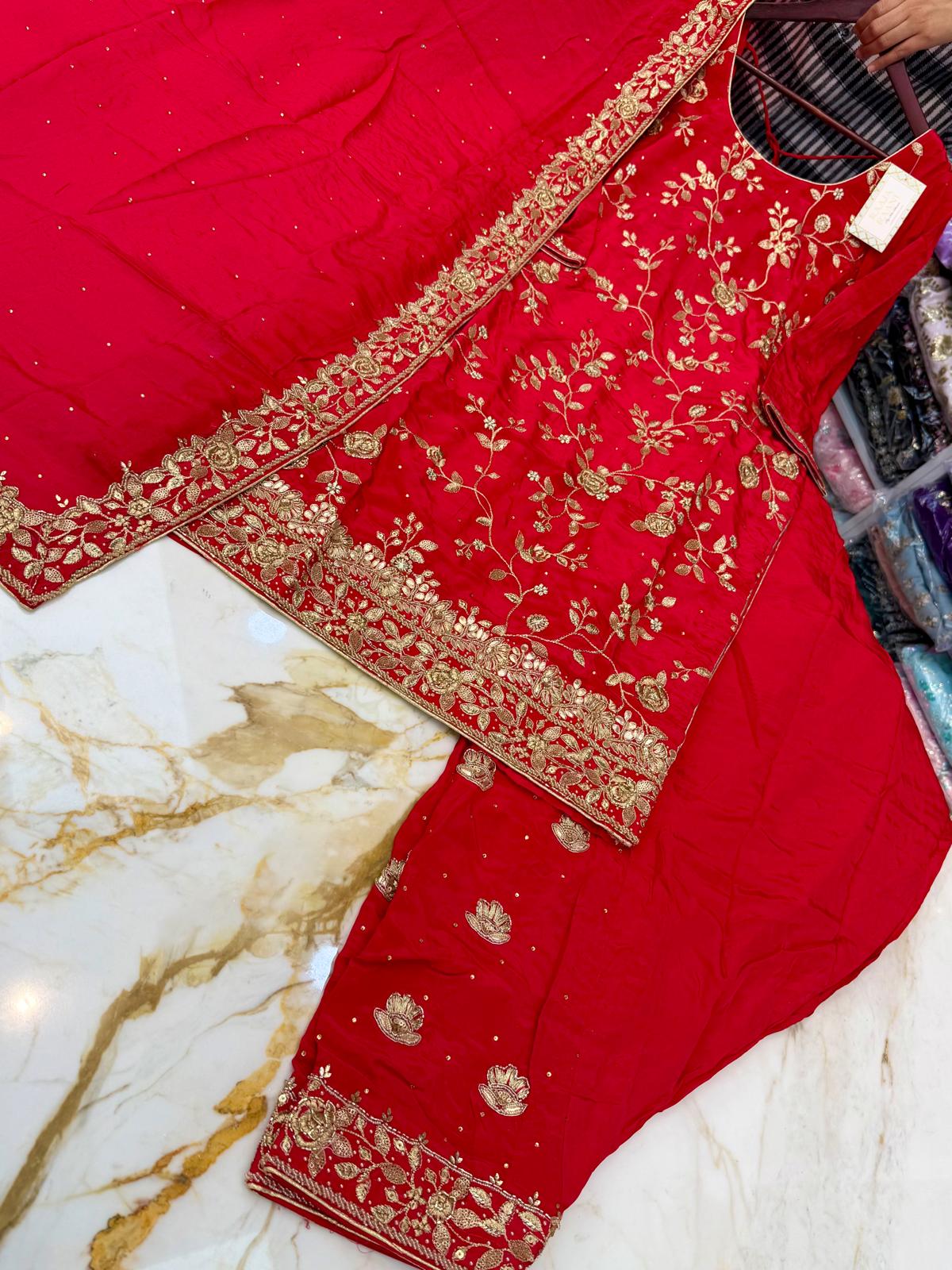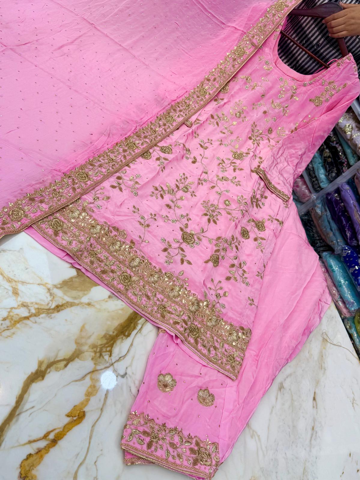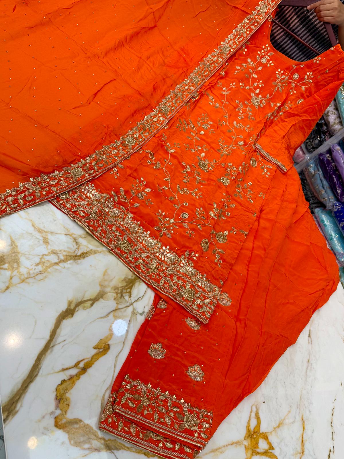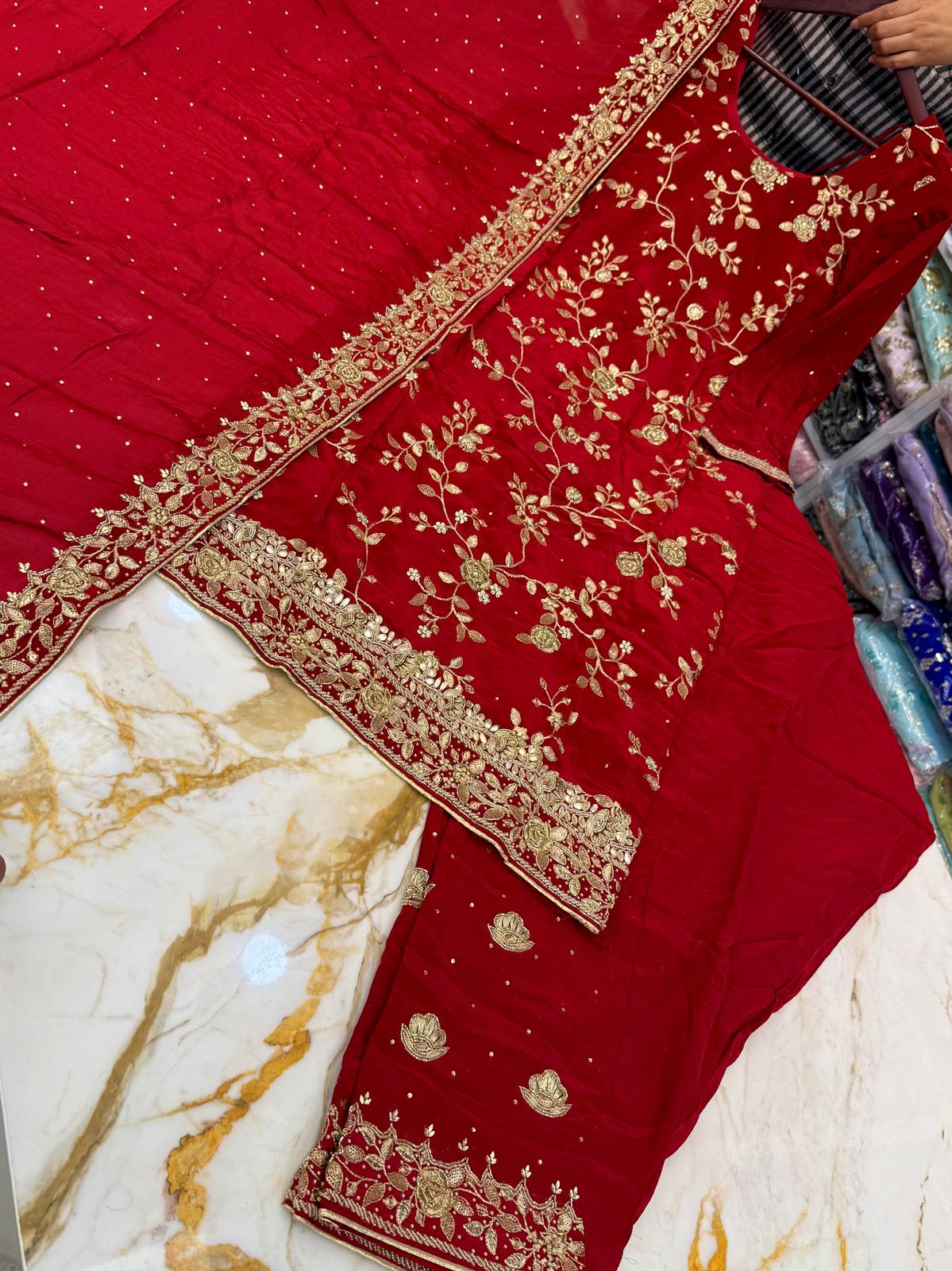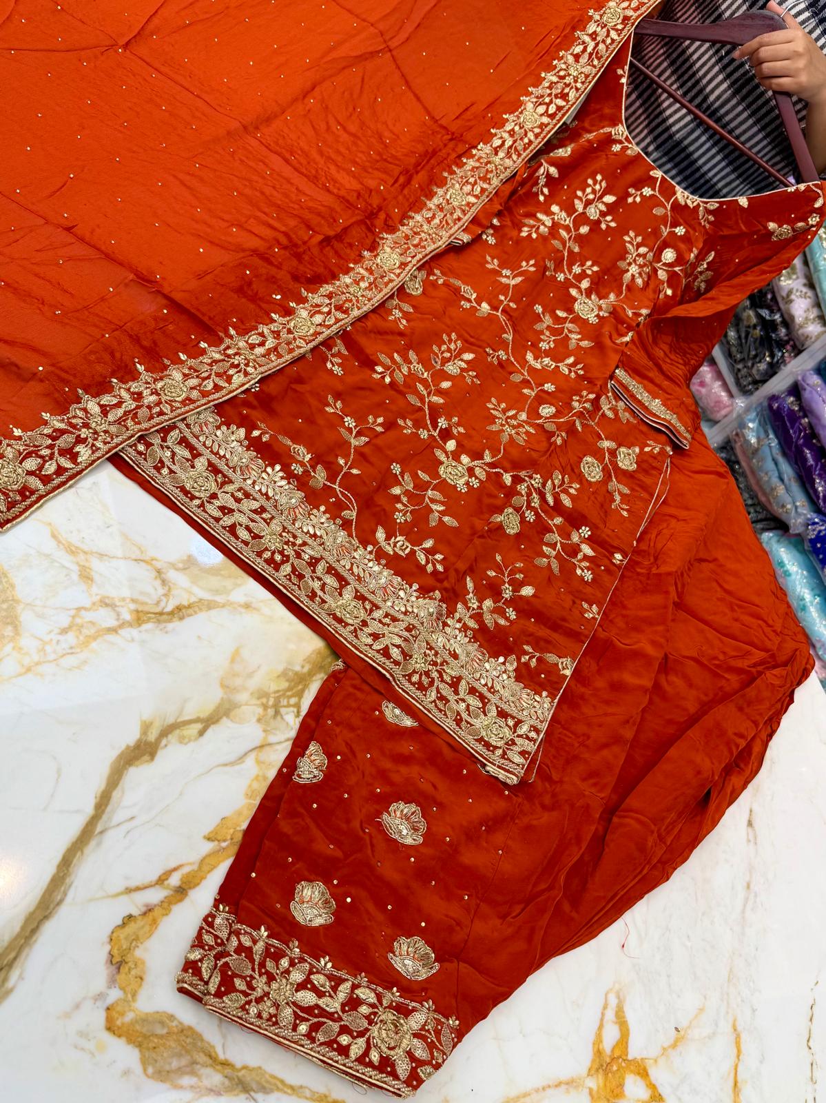 • Amazing Pure Crepe Embroidered Long Sleeves Shirt with Embroidered Patiala Salwar Bottom.