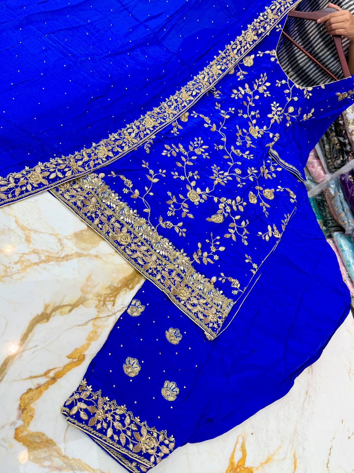 Amazing Pure Crepe Embroidered Patiala Salwar Suit - 10 Colors