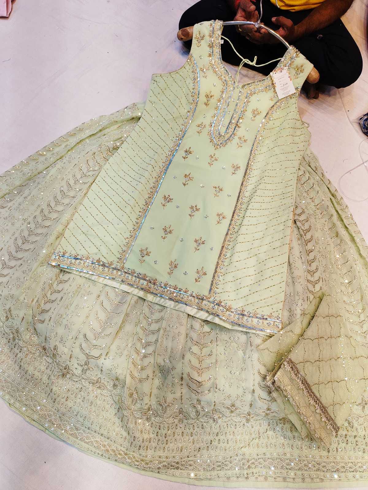 - Extravagant Cut Dana Hand Embroidered Shirt with Heavy Embroidered Lehenga Bottom.