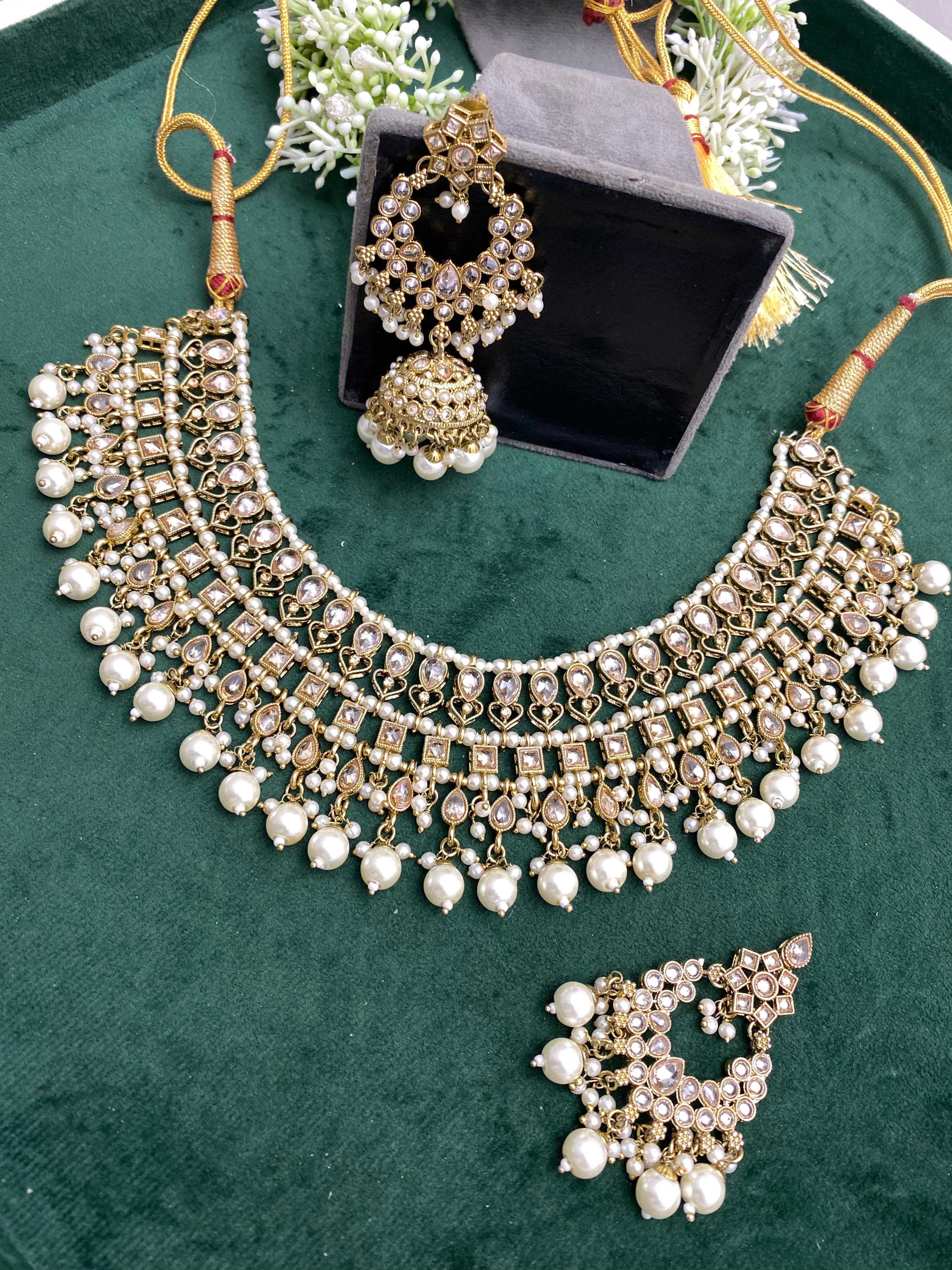 Beautiful Gold Color Polki Stone Necklace Set with Jhumki Earrigns