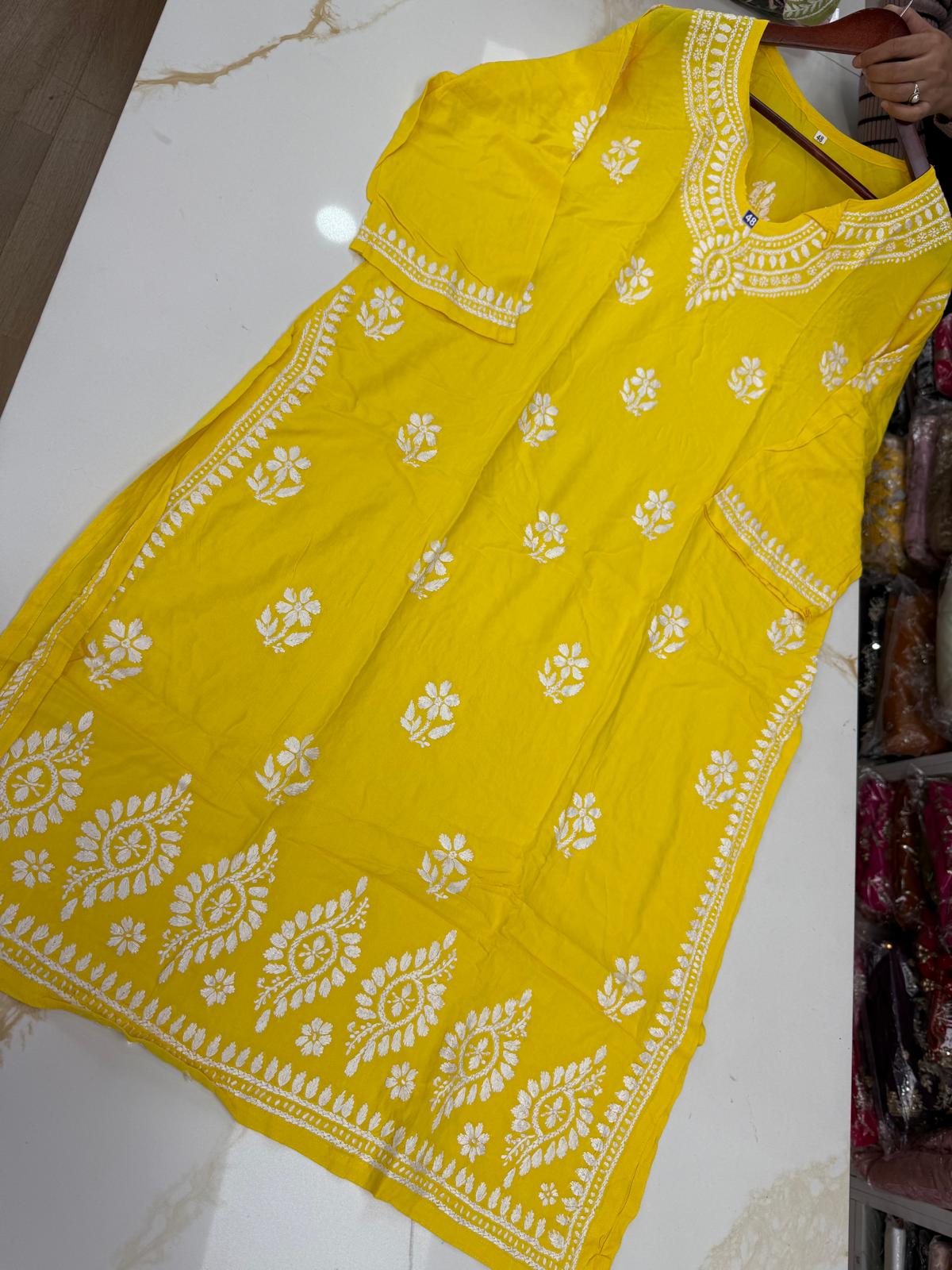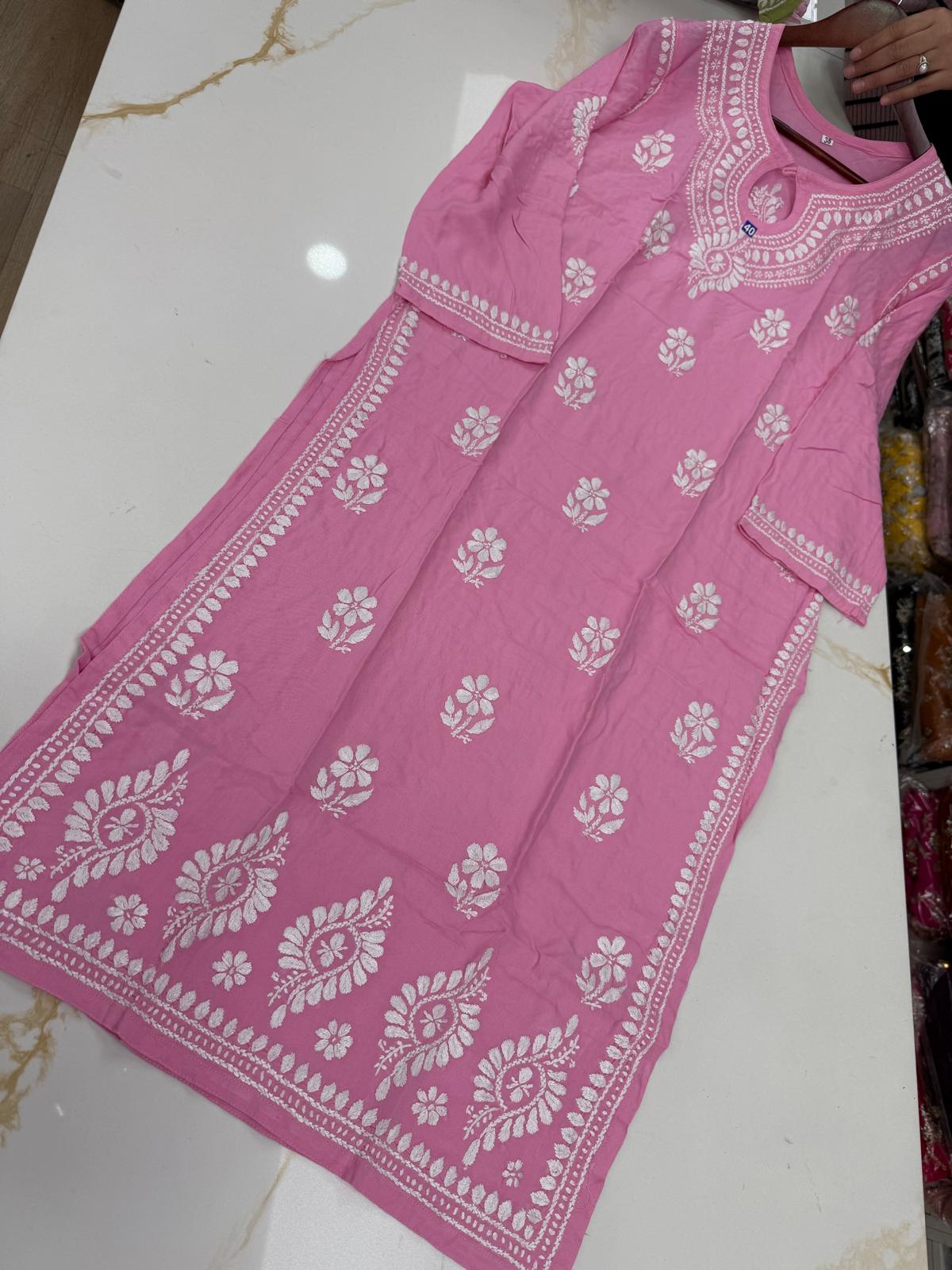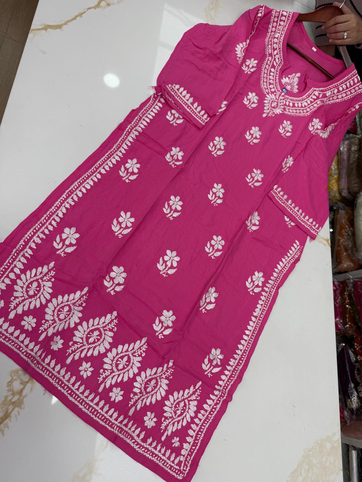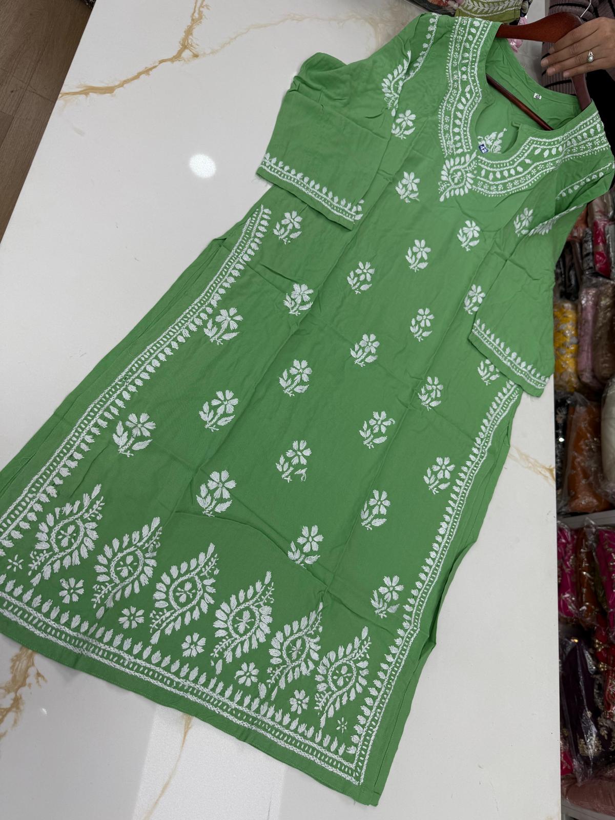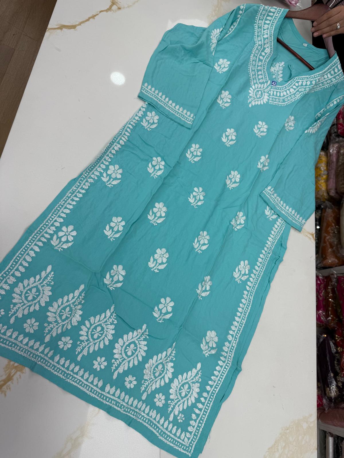 - Amazing Lakhnawi Embroidered Rayon Cotton Full Sleeves Kurti.