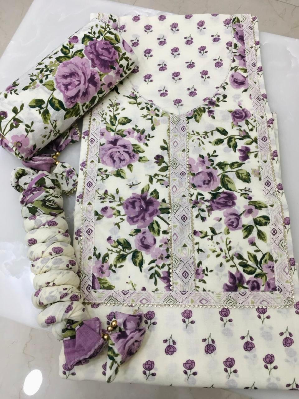 Amazing Lavender Color Floral Print Cotton Unstitched Suit