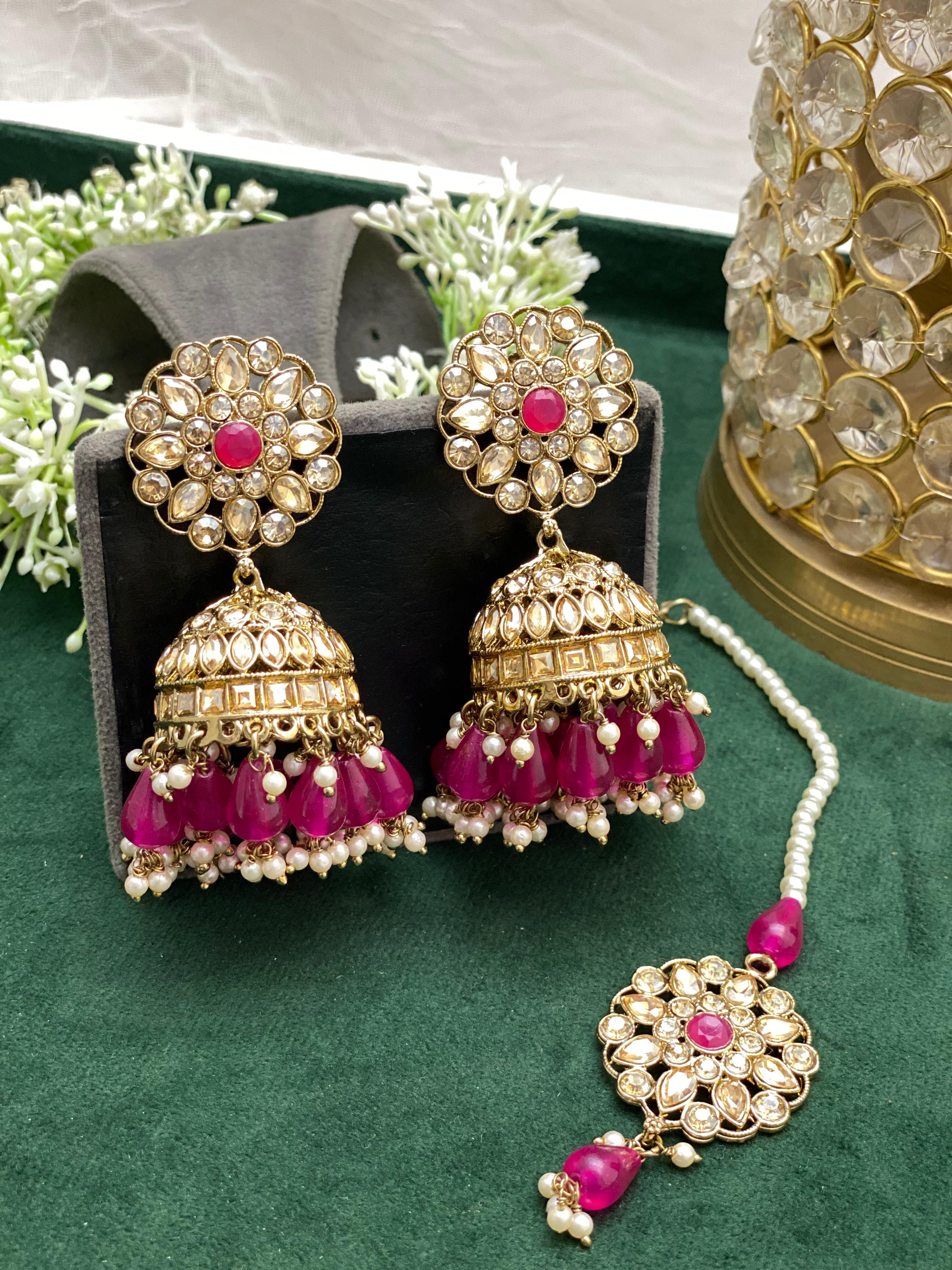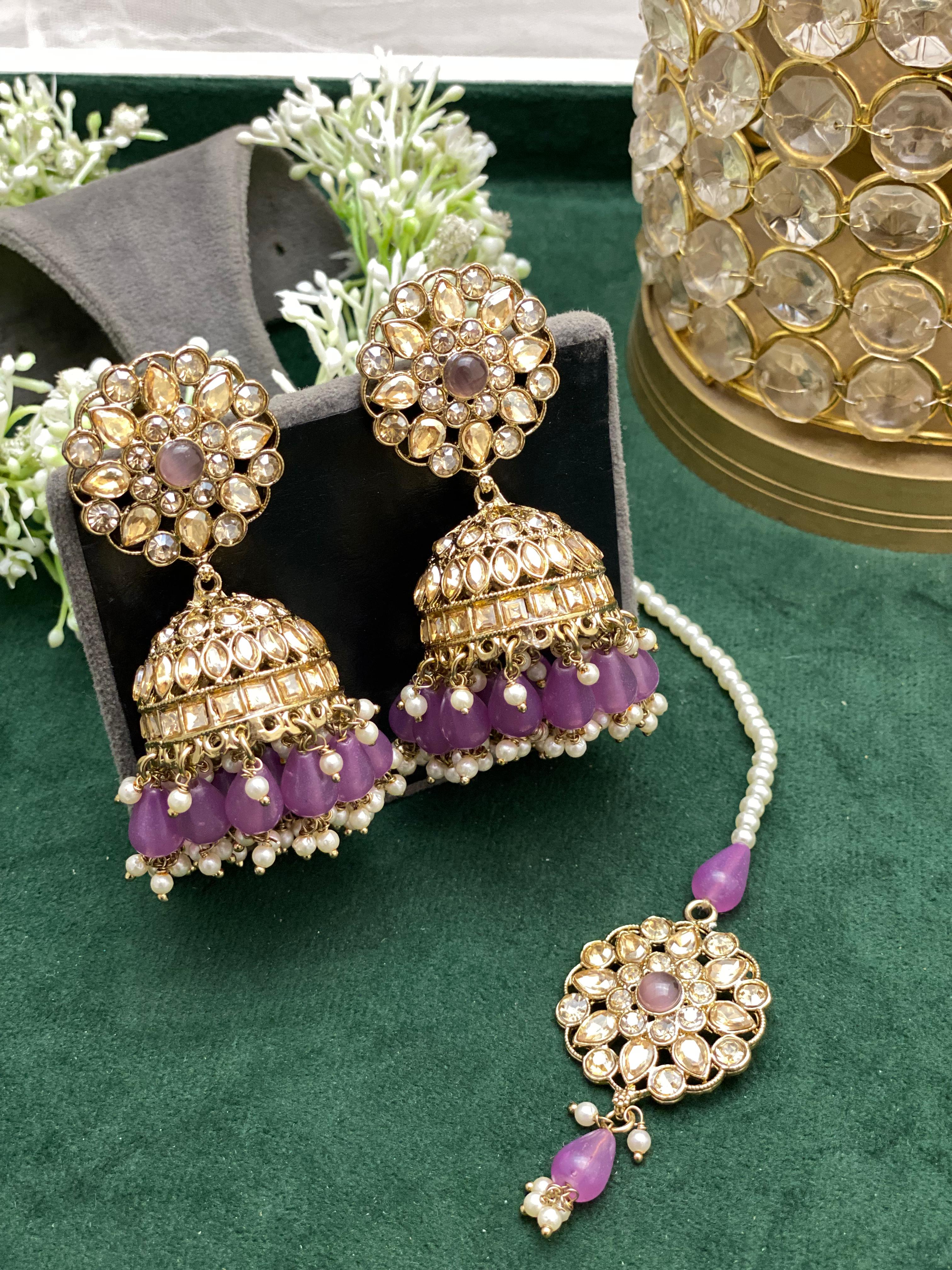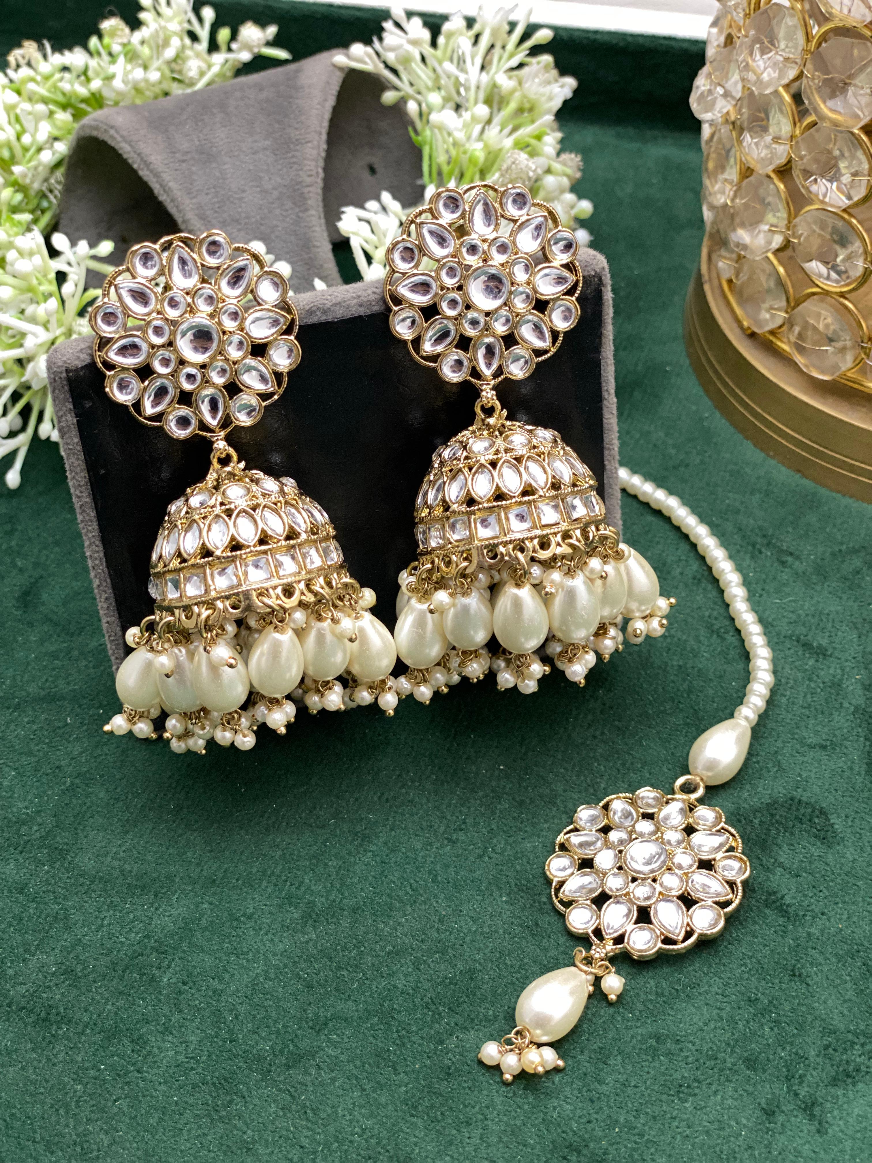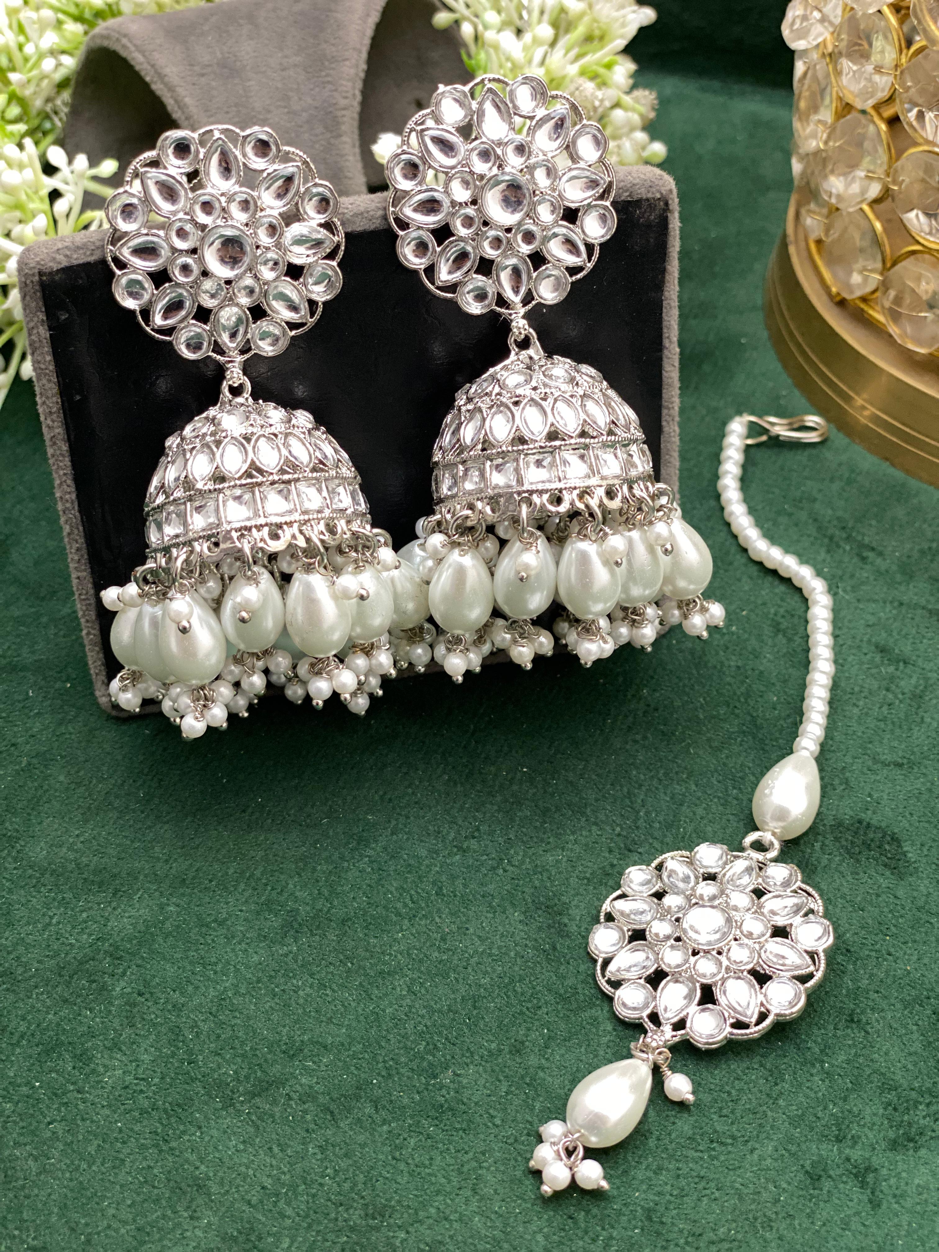 - Designer Kundan Stone 2 Jhumki Earrings and 1 Tikka.