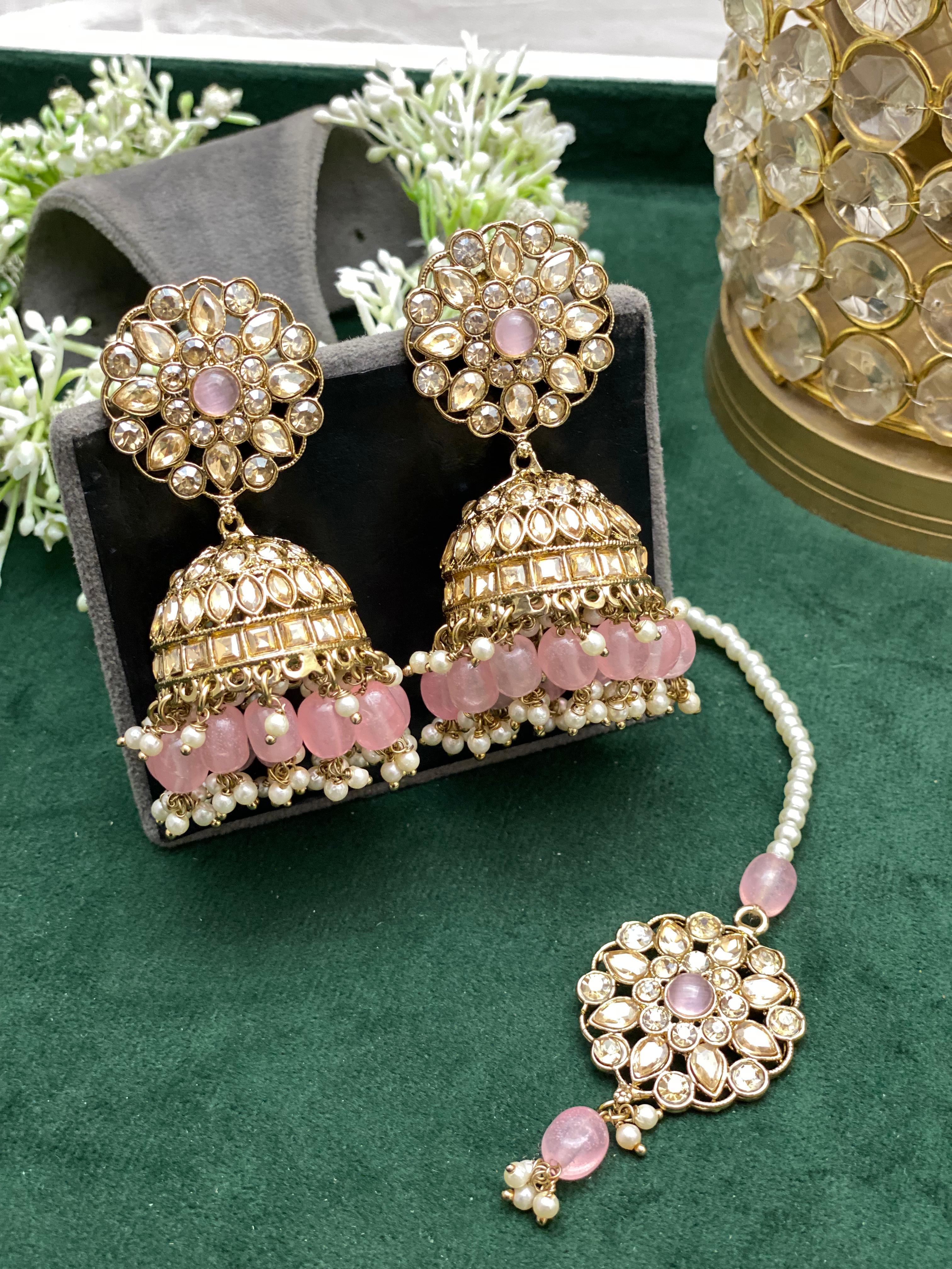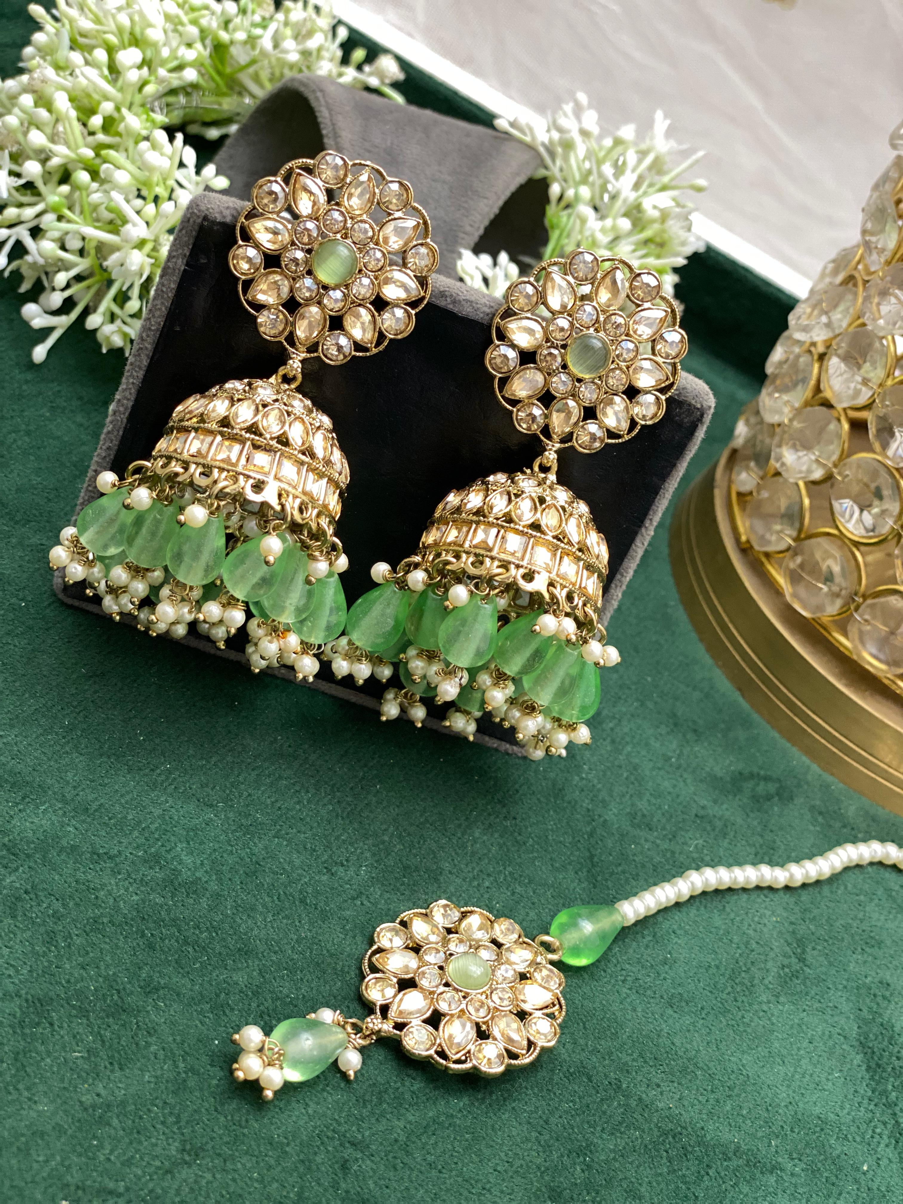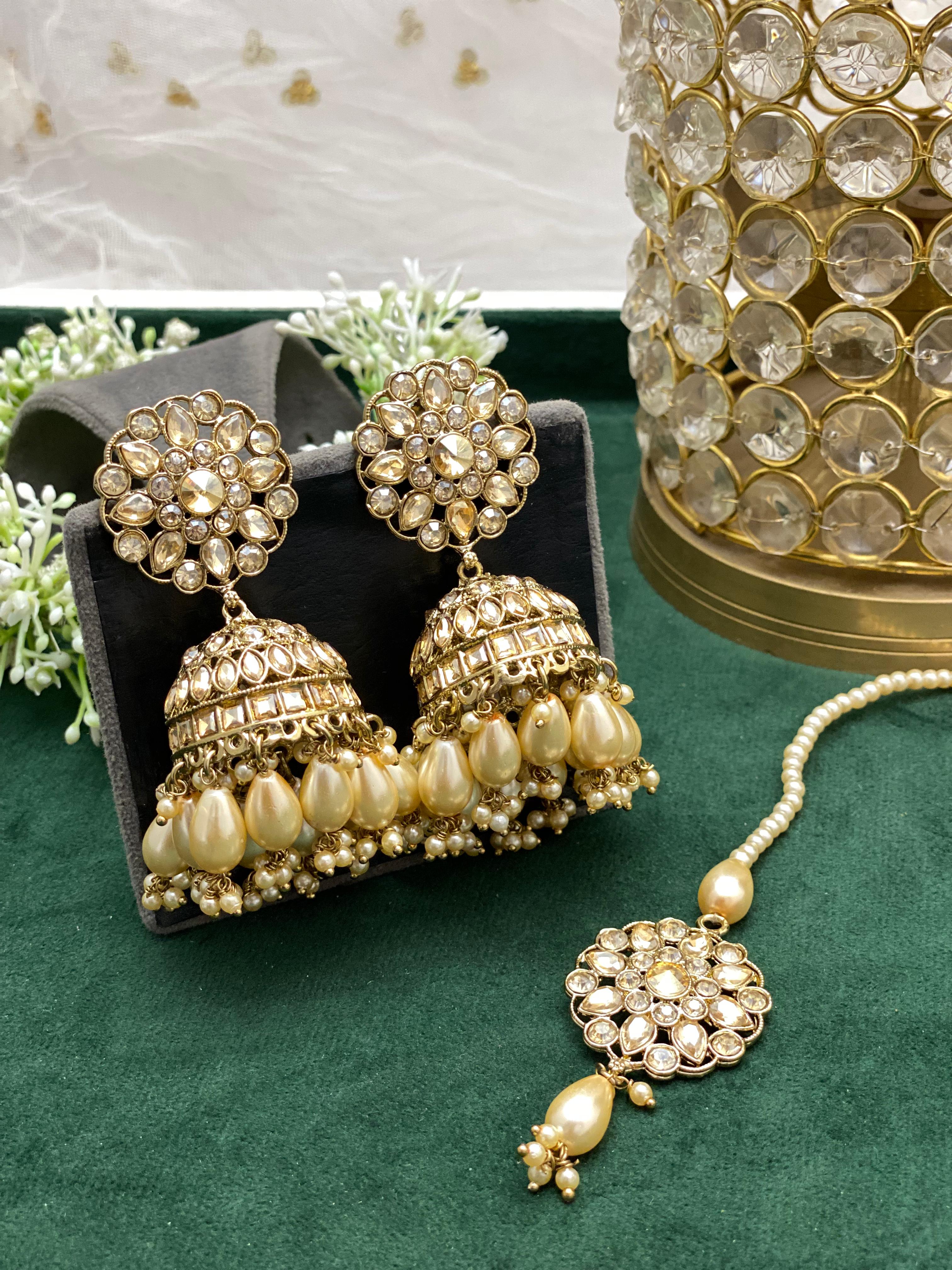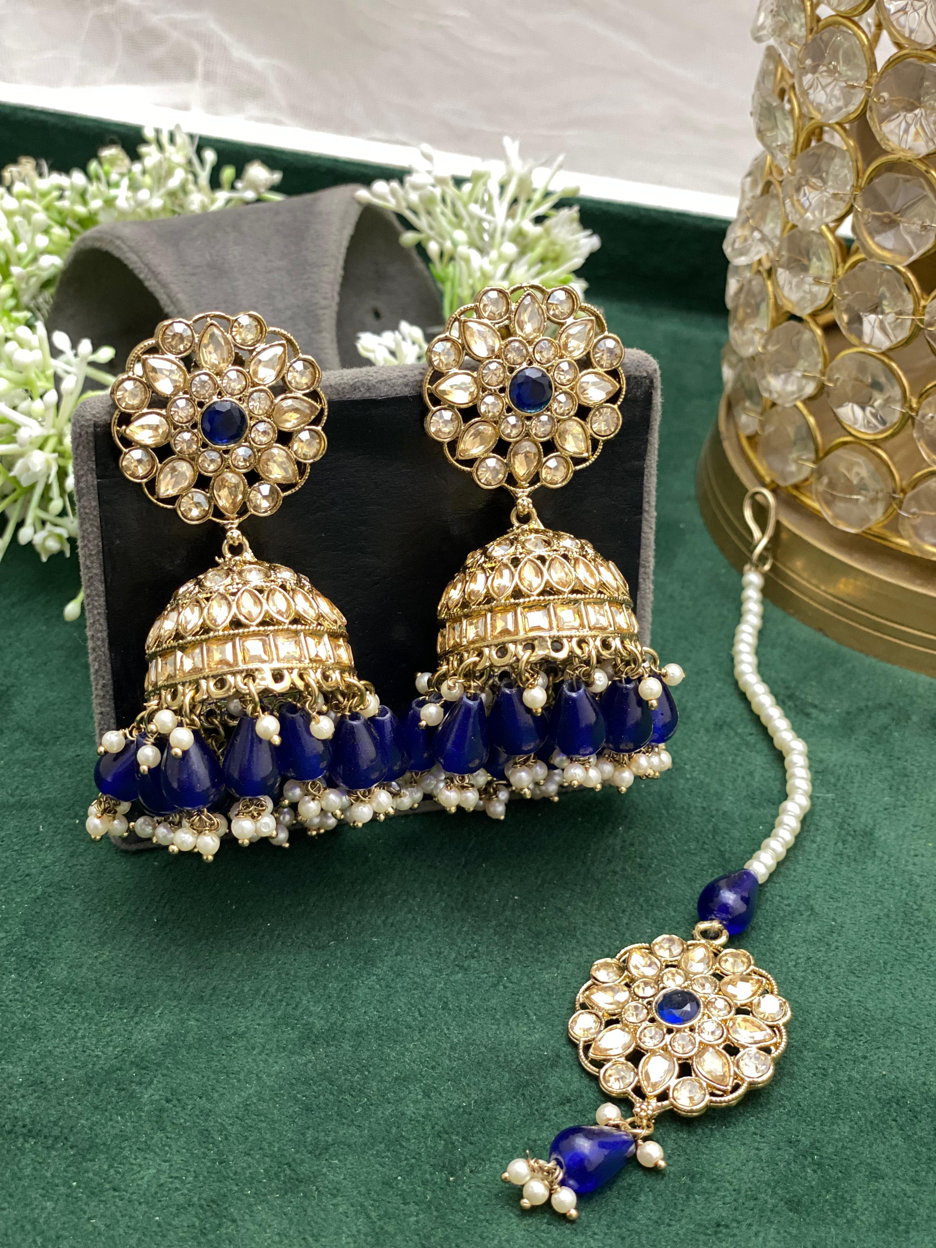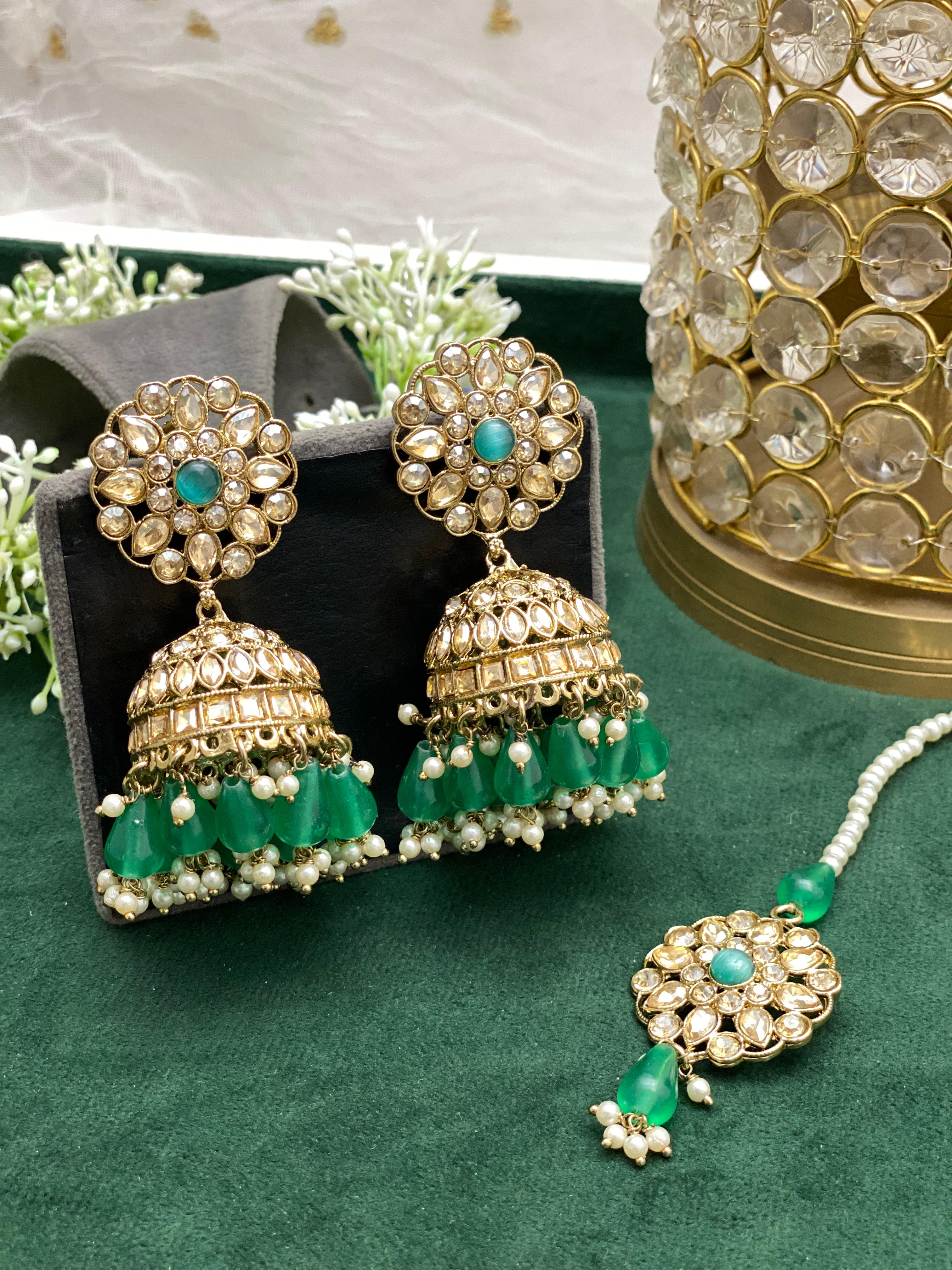 - Designer Kundan Stone 2 Jhumki Earrings and 1 Tikka.