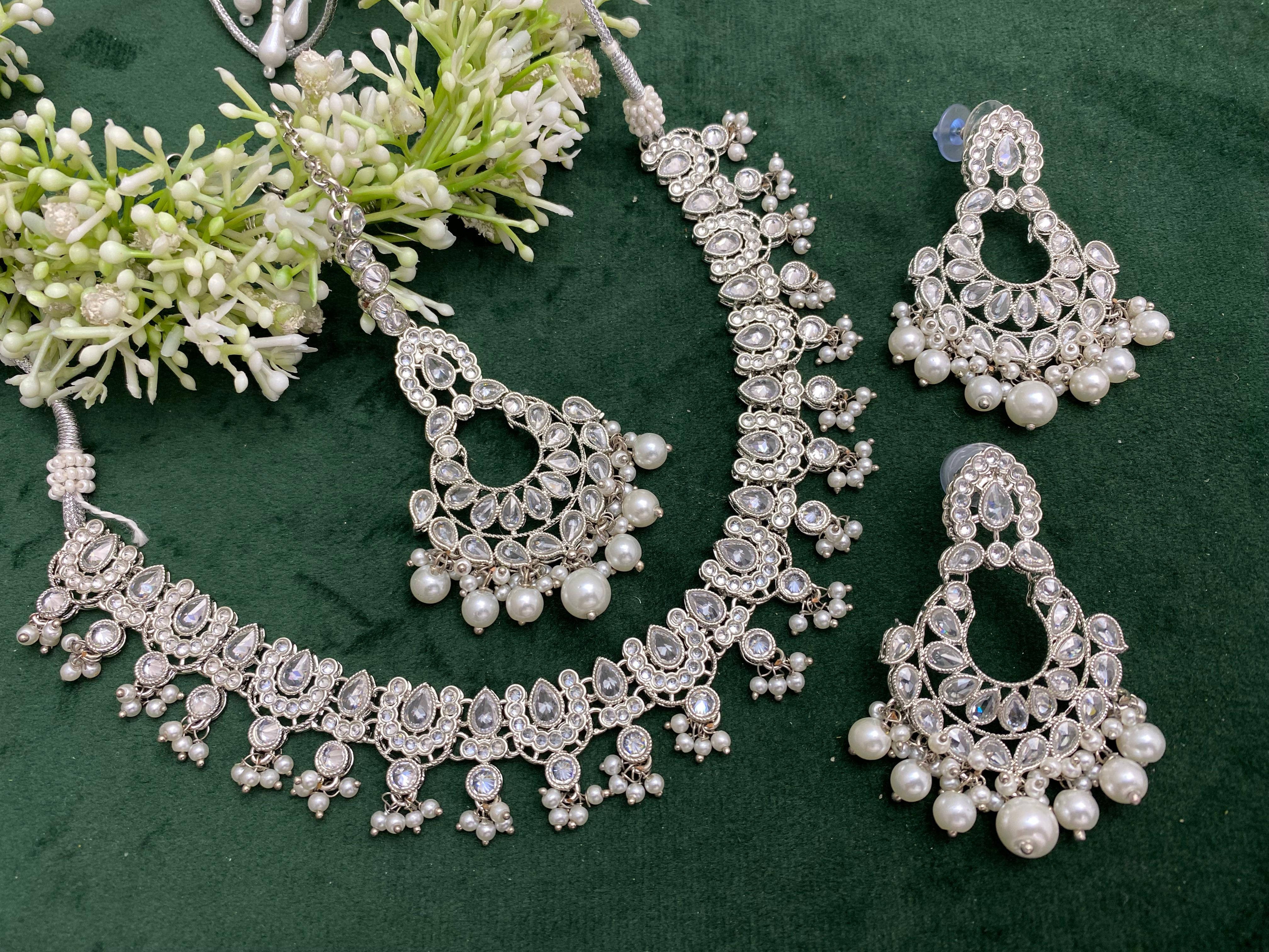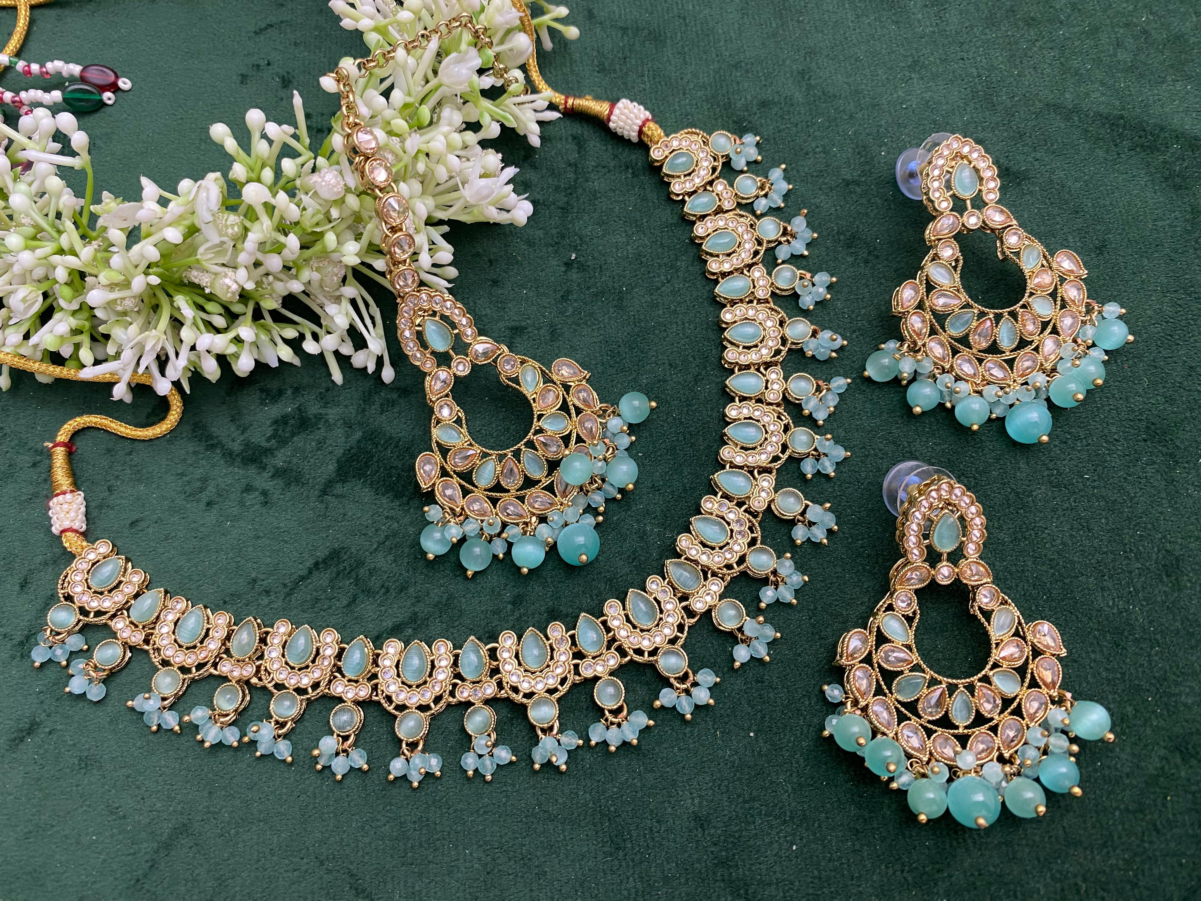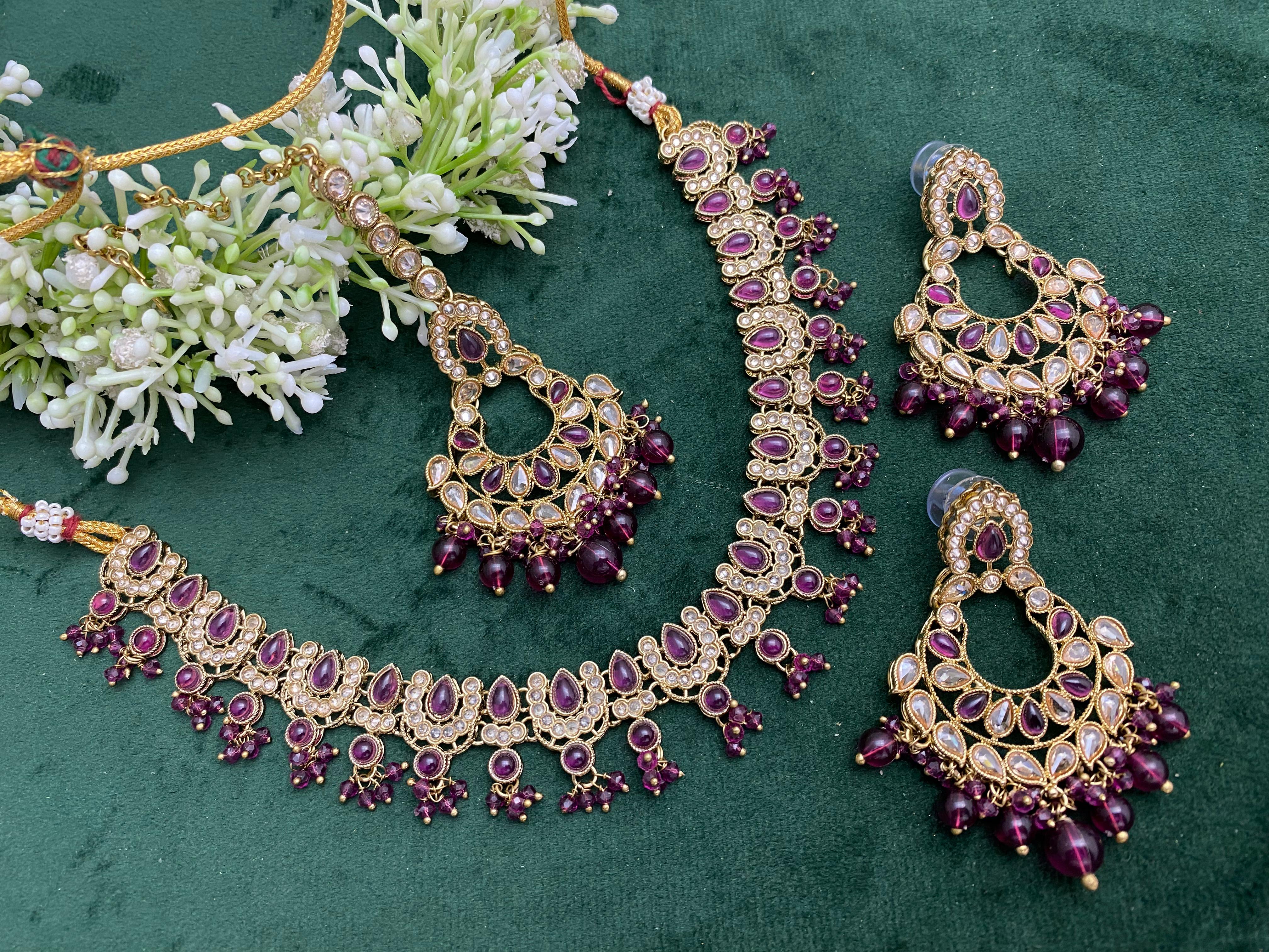 - Elegant Polki Stone Necklace Set with 2 Earrings and 1 Tikka.