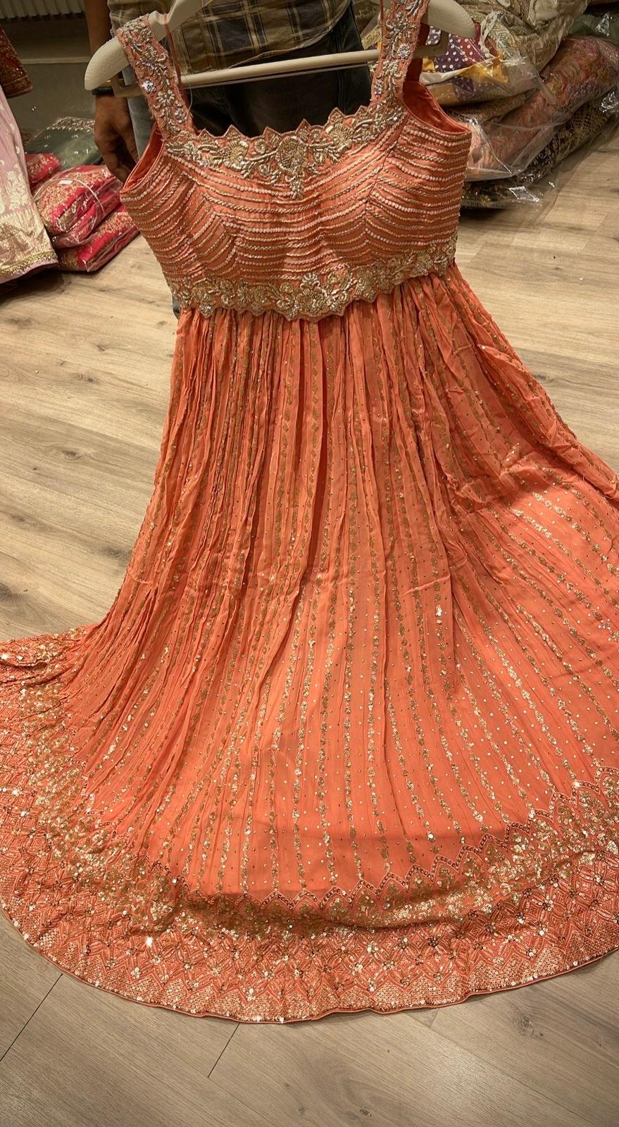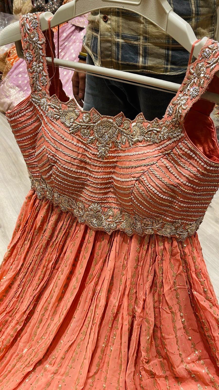 - Amazing Hand Embroidered Embroidered Orange Color Crop Top Blouse with Heavy Embroidered Orange Color Lehenga Bottom.