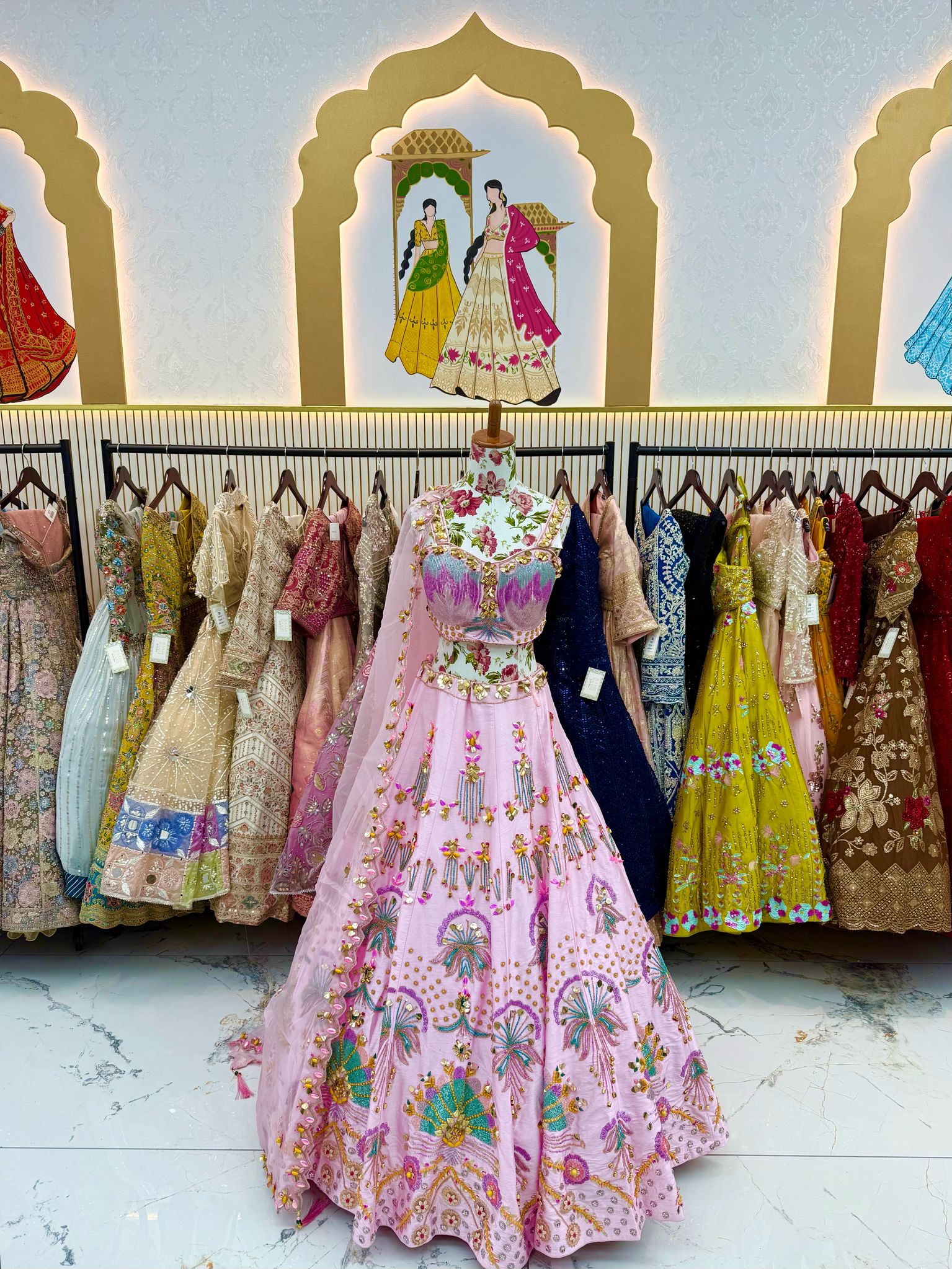 Amazing Designer PDP Inspired Hand Embroidered Baby Pink Color Lehenga