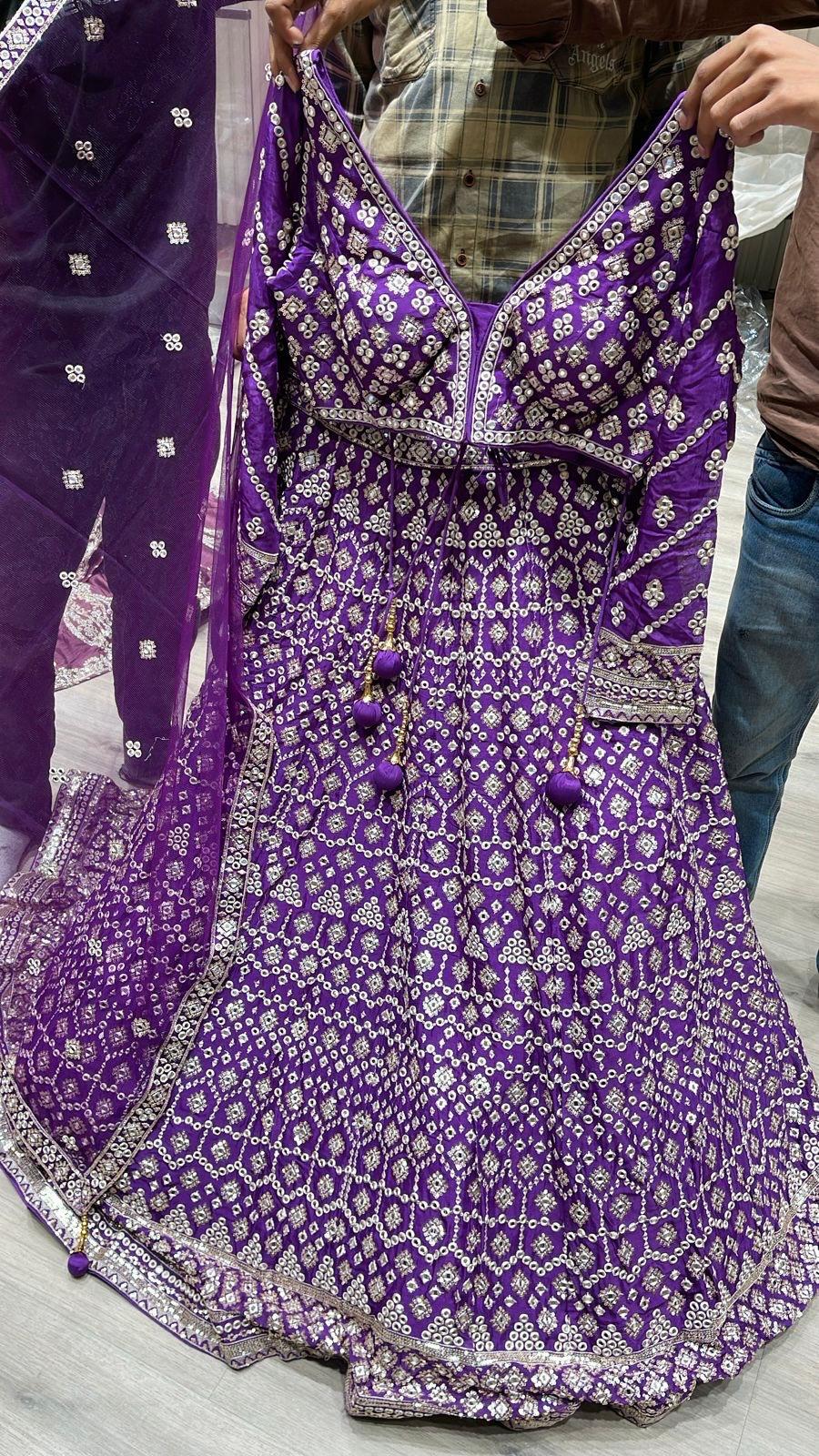 • Elegant Heavy Embroidered Purple Color Long Sleeves Blouse with Heavy Embroidered Purple Color Lehenga Bottom.