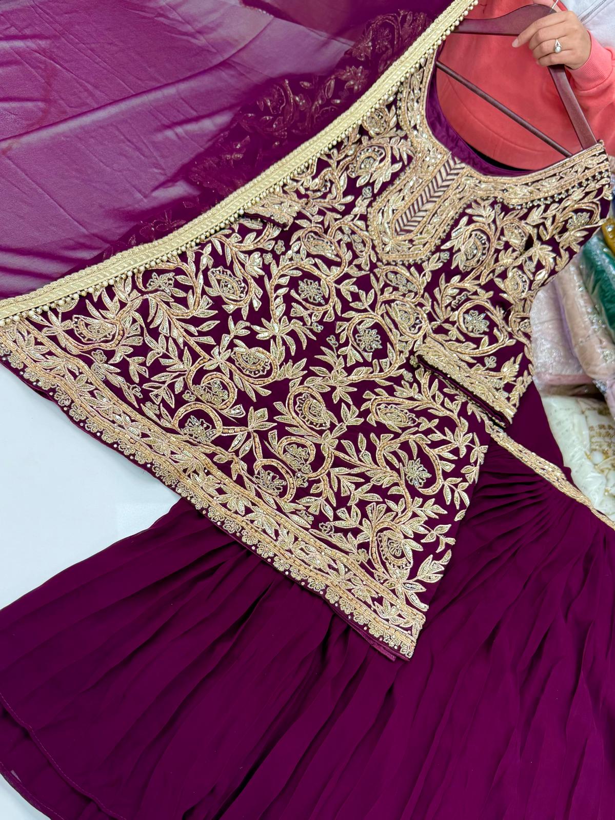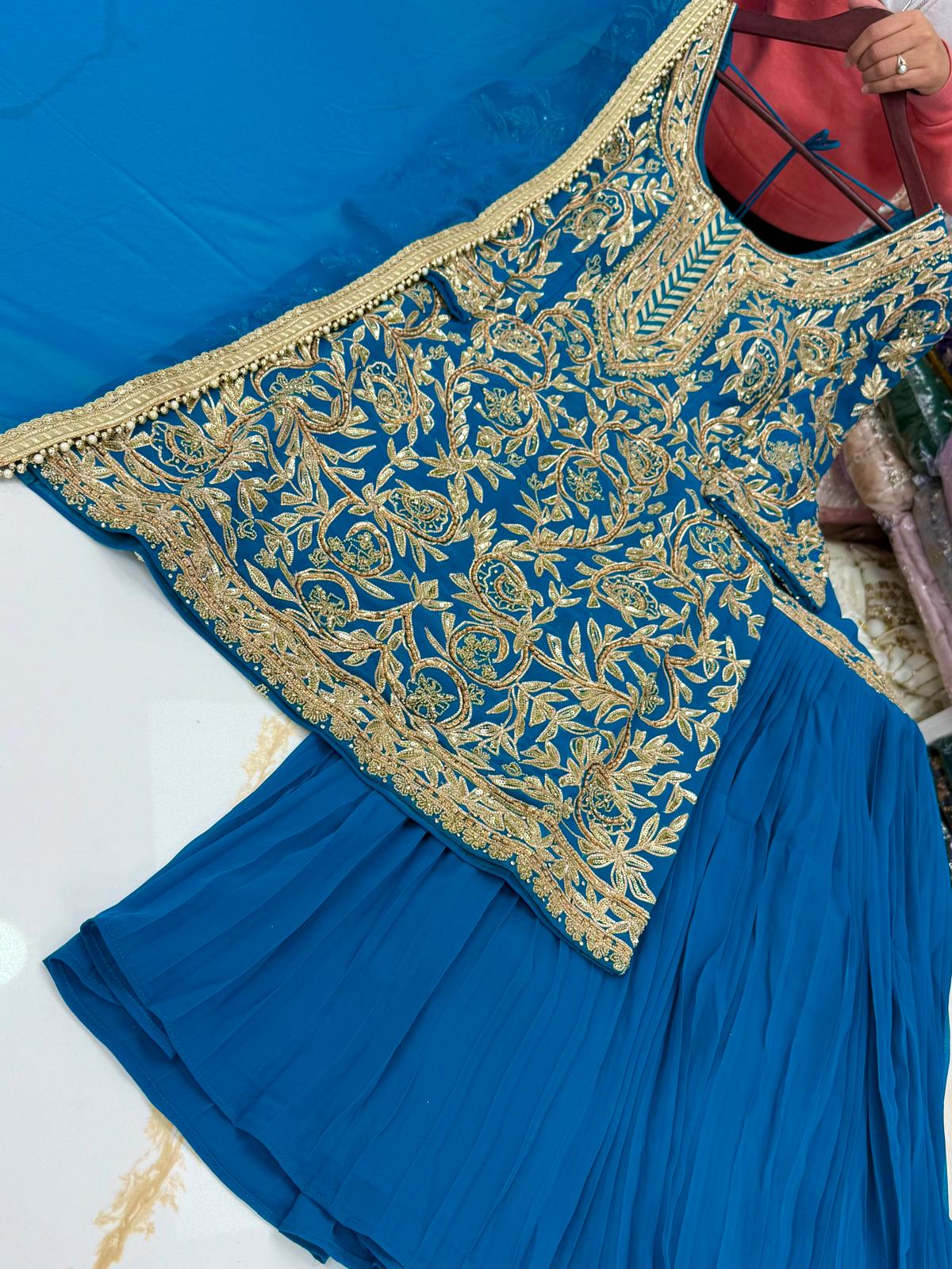 Amazing Hand Embroidered Full Sleeves Sharara Suit - 3 Colors