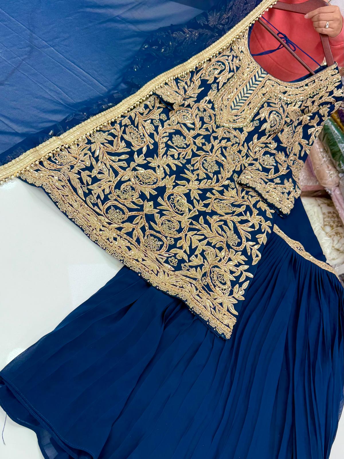 • Amazing Hand Embroidered Full Sleeves Shirt with Embroidered Sharara Bottom.