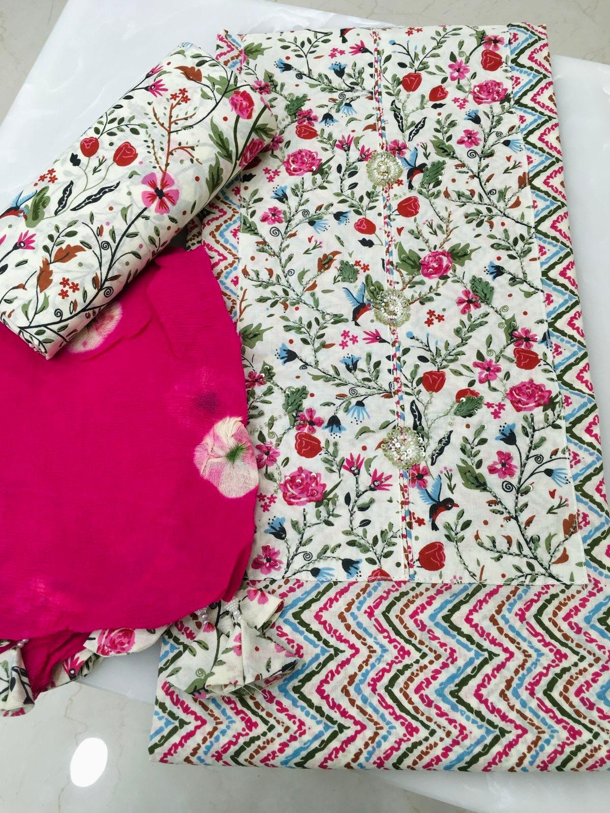 Designer Multi Color Floral Print Cotton Unstitched Suit