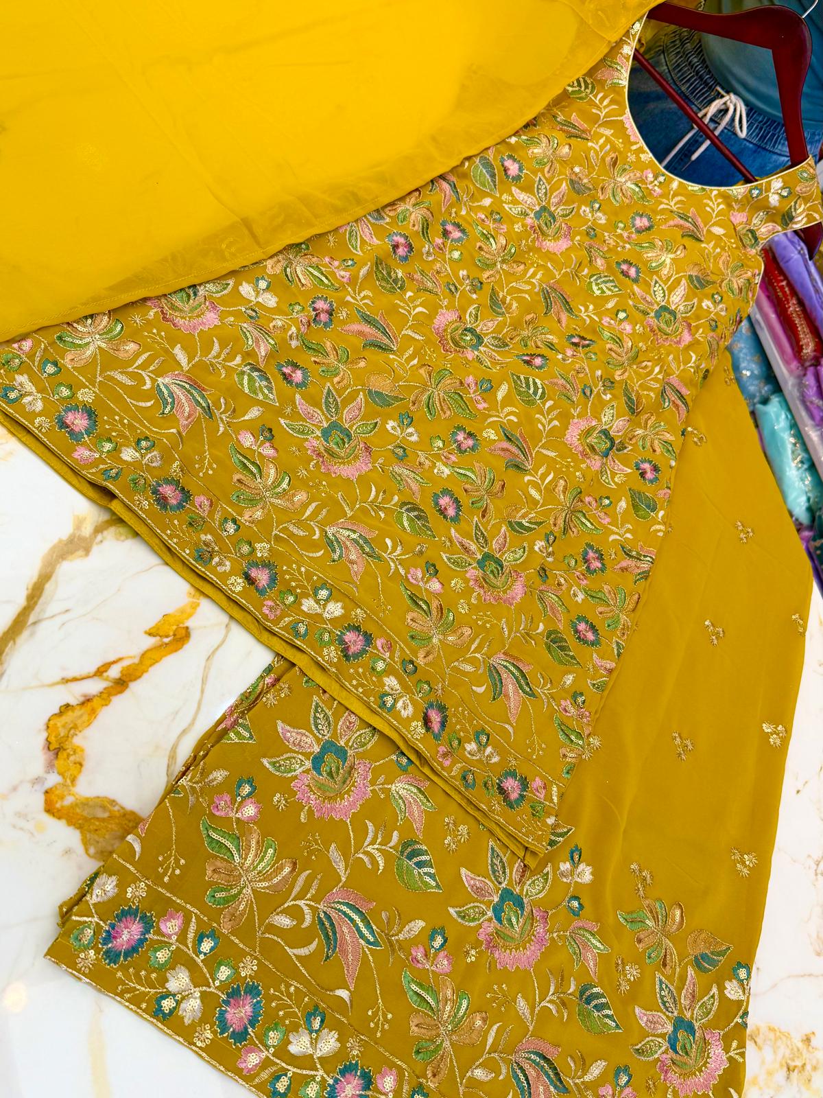 - Amazing Boutique Multi Color Embroidered Shirt with Palazo Bottom.