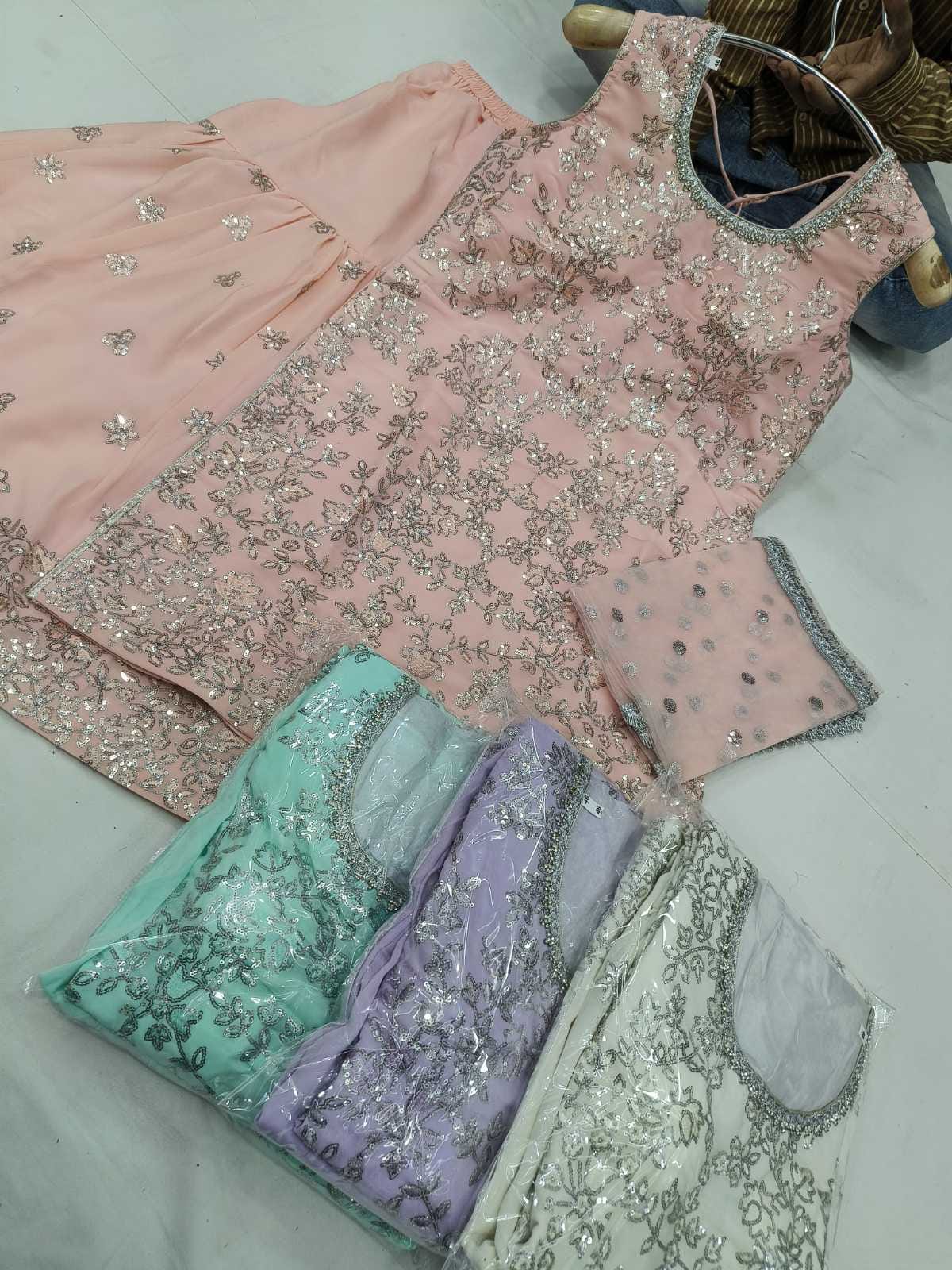 Amazing Boutique Silver Leafy Pattern Embroidered Sharara Suit - 7 Colors