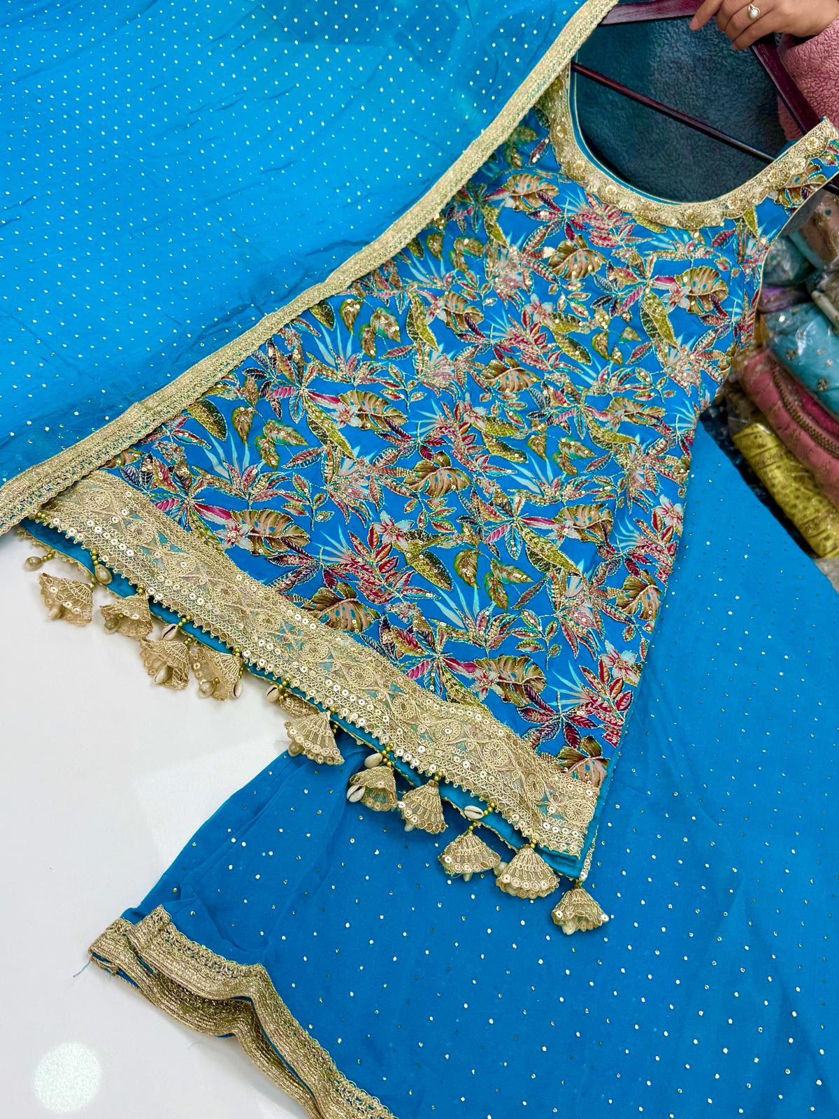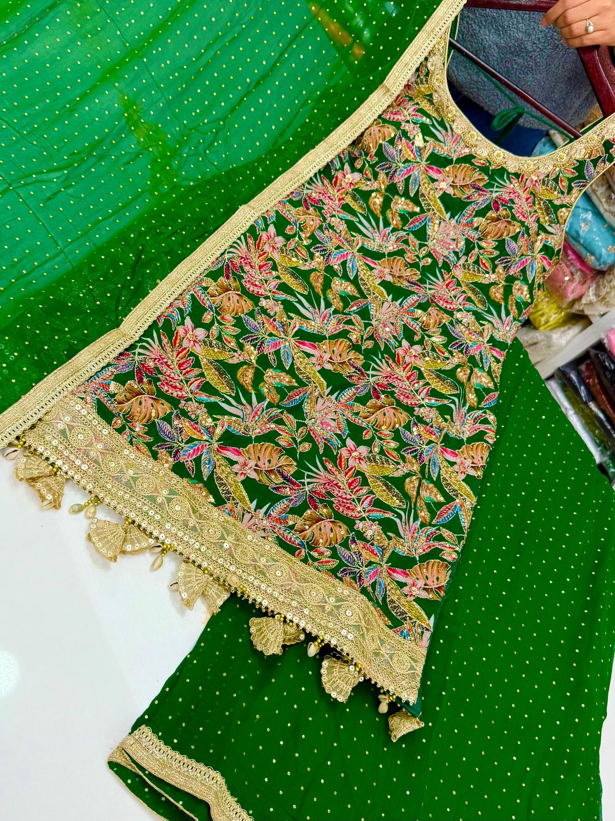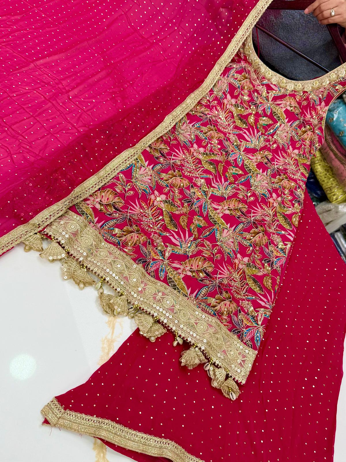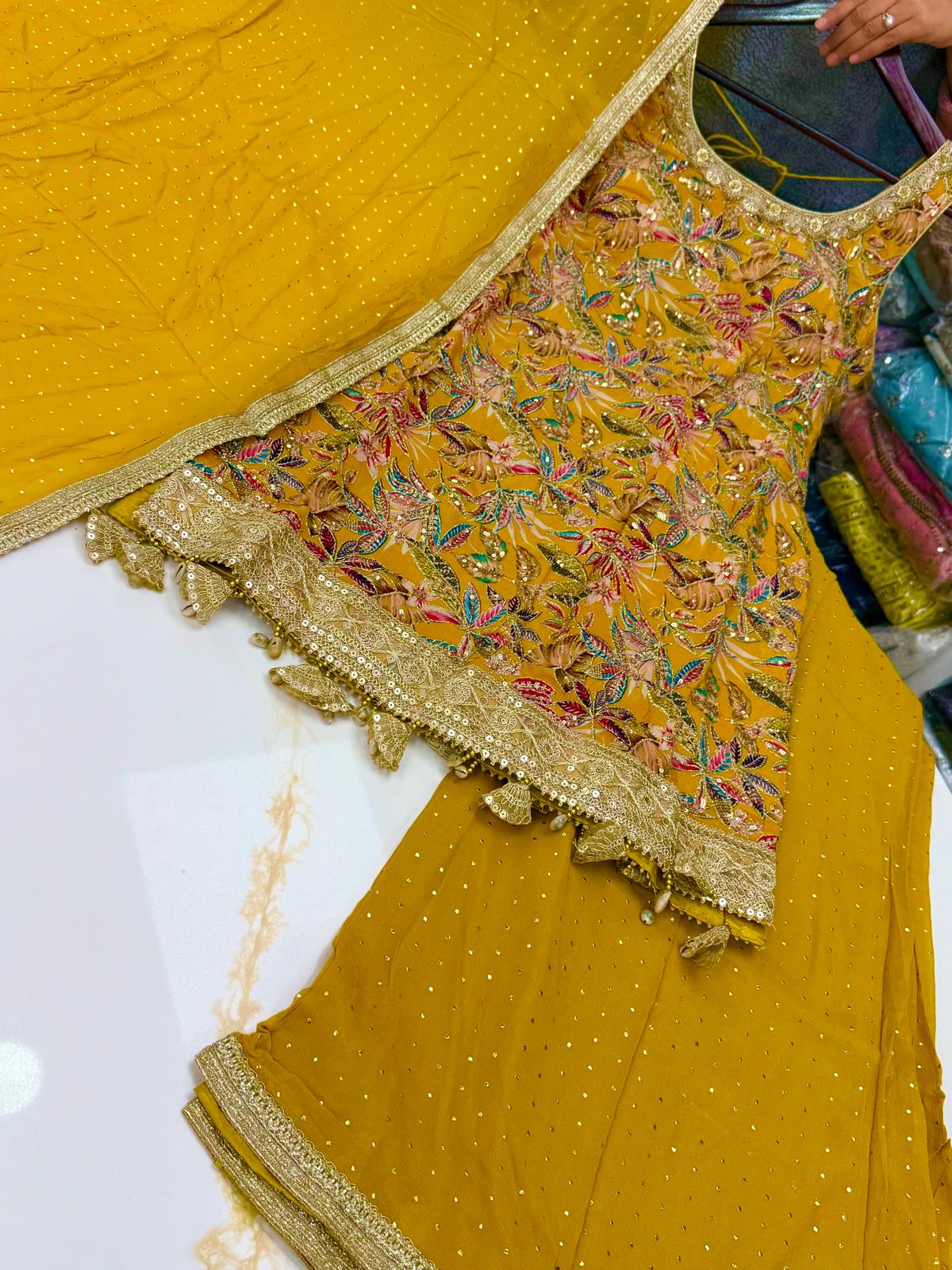 Amazing Crepe Silk Boutique Embroidered Sharara Suit - 4 Colors