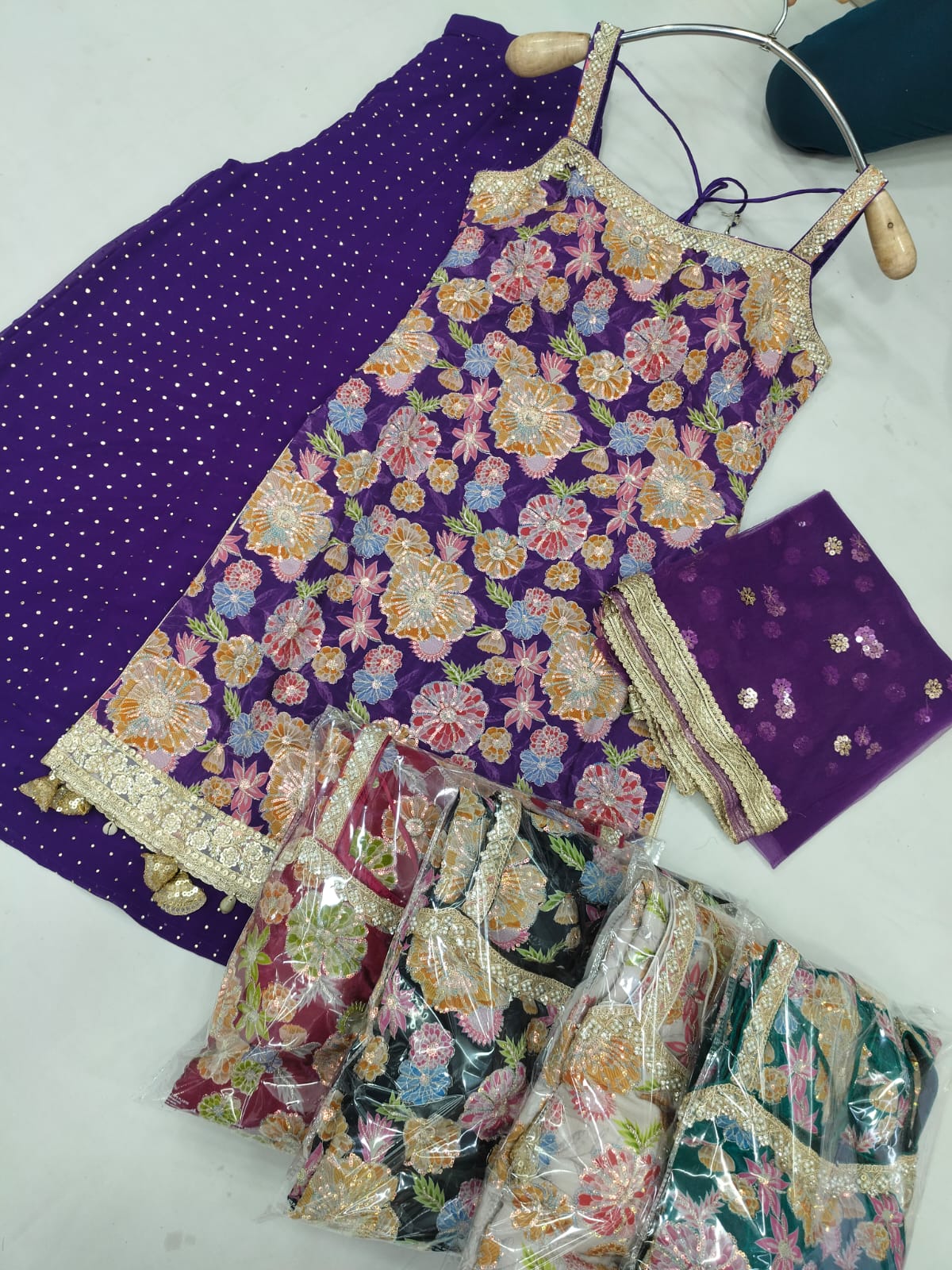 Amazing Designer Multi Color Floral Print & Embroidered Sharara Suit - 5 Colors