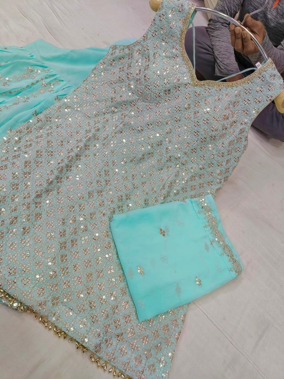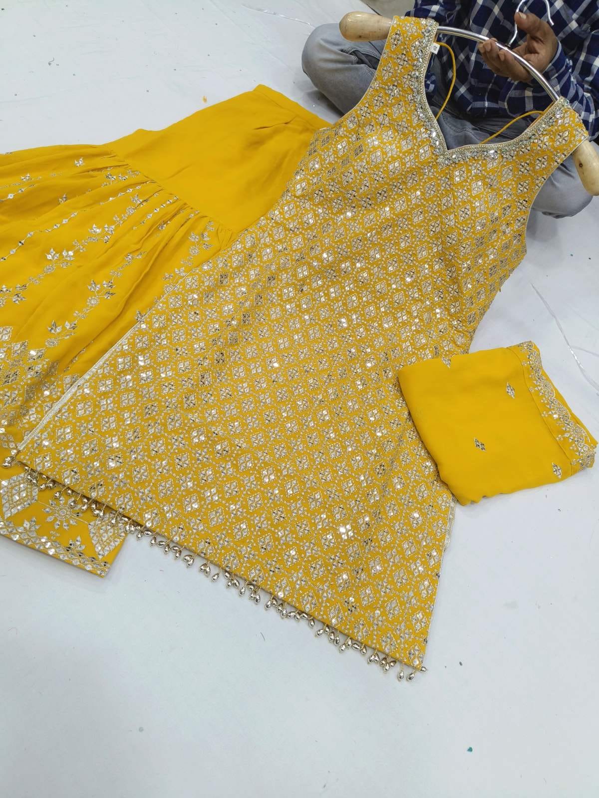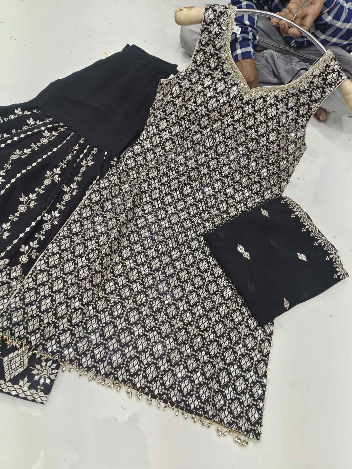 - Beautiful Boutique Heavy Embroidered Shirt with Beautiful Heavy Embroidered Sharara Bottom.