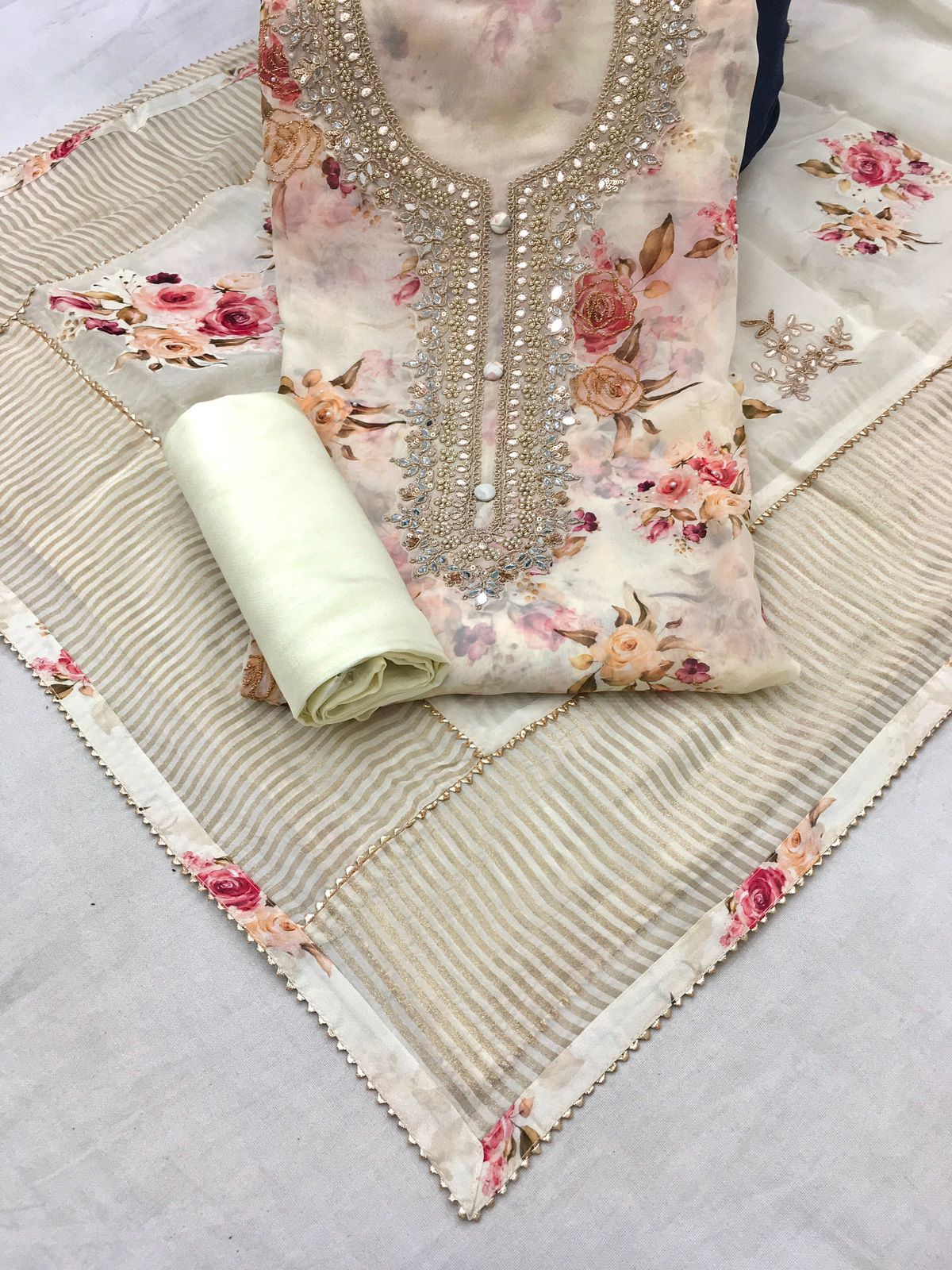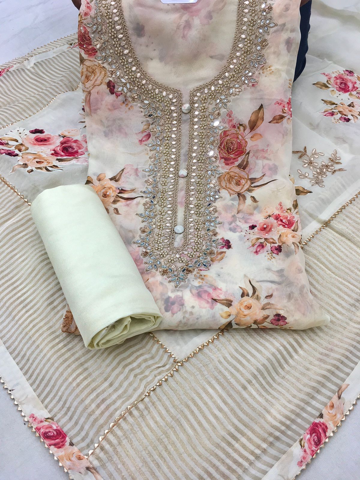 - Boutique Cream Color Floral Print Unstitched Shirt with Bottom Fabric
