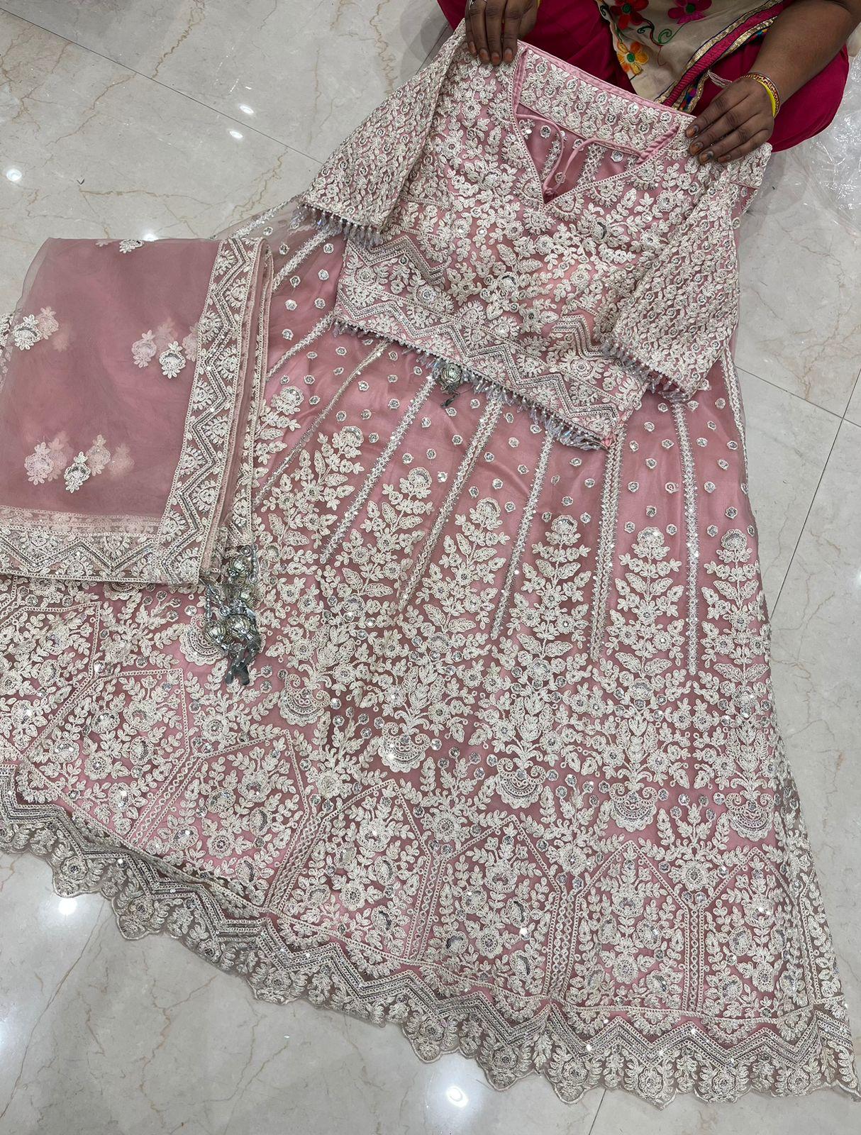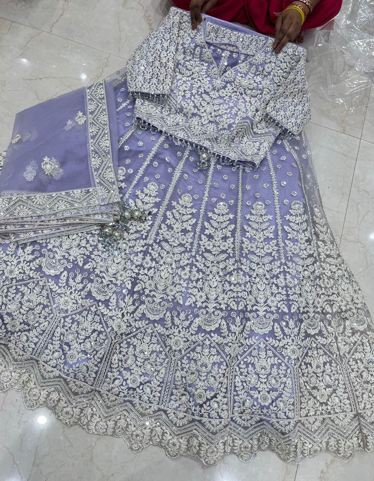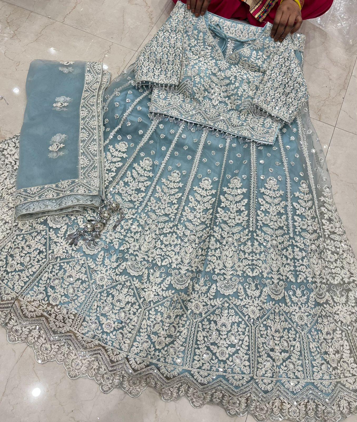 - Beautiful Stone & Thread Embroidered Half Sleeves Blouse with Heavy Embroidered Lehenga Bottom.