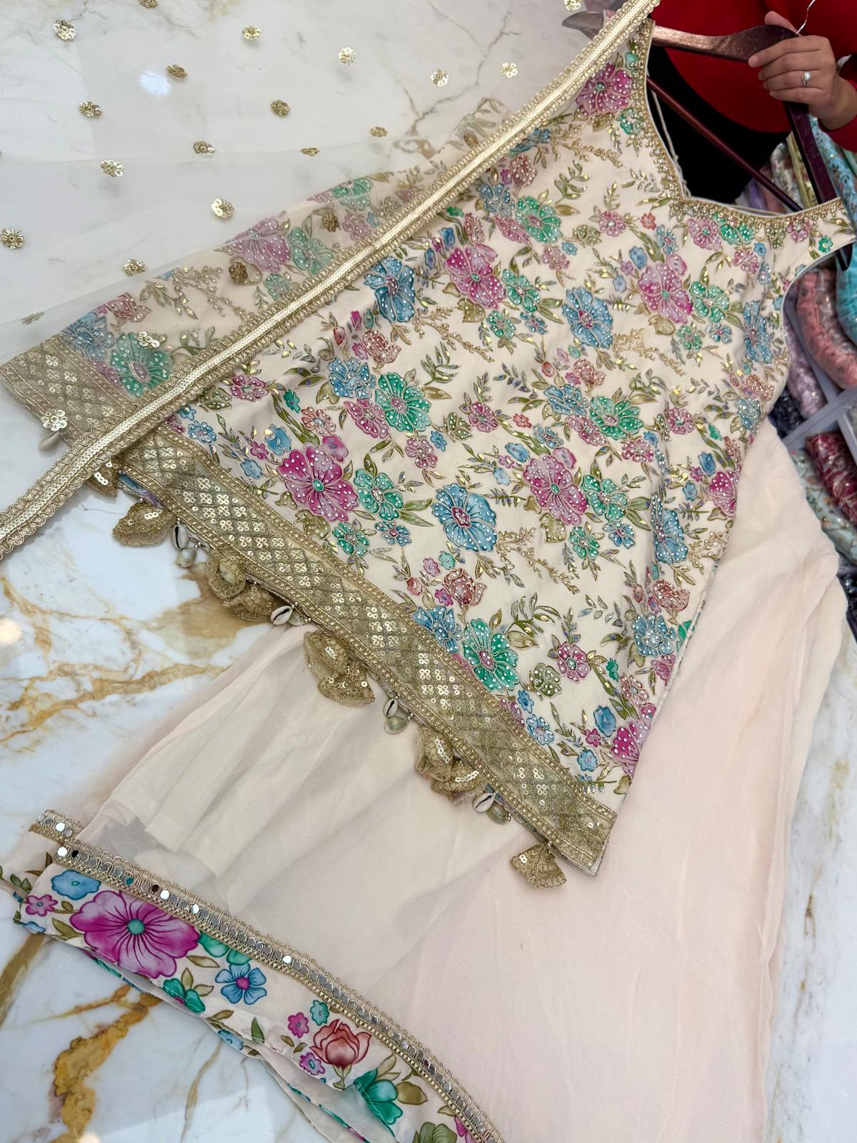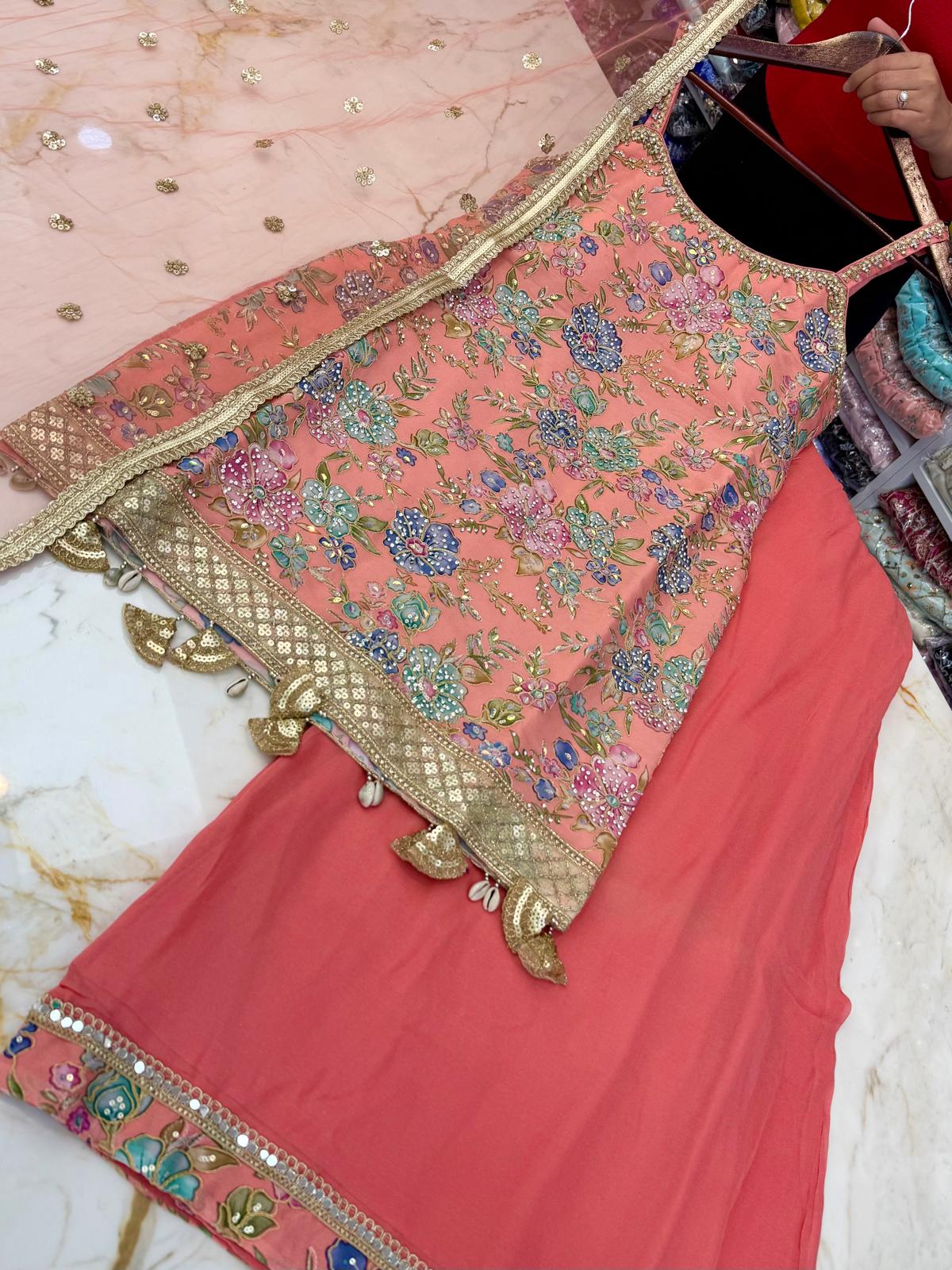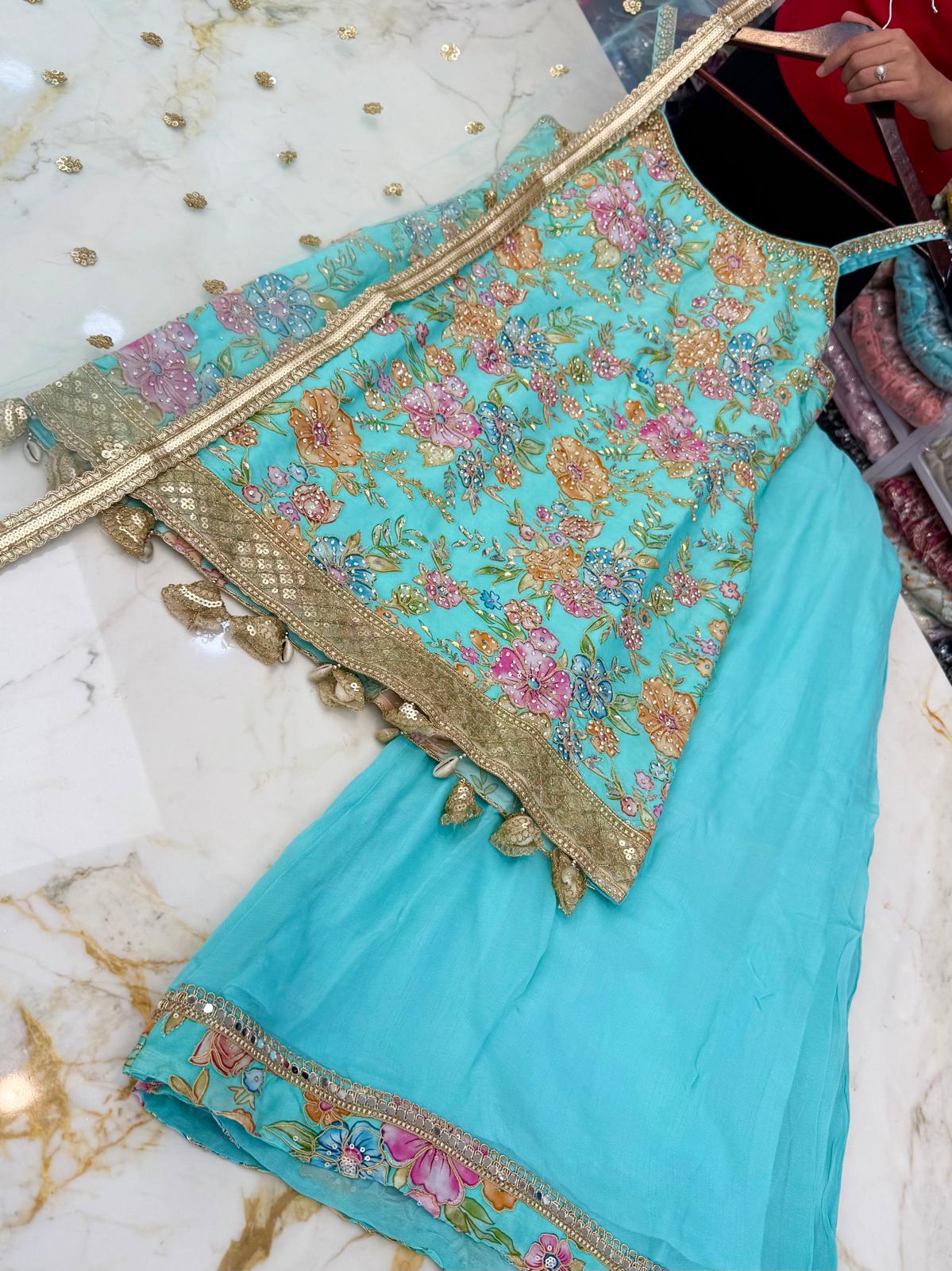 - Designer Boutique Embroidered Strap Style Shirt with Palazo Bottom.