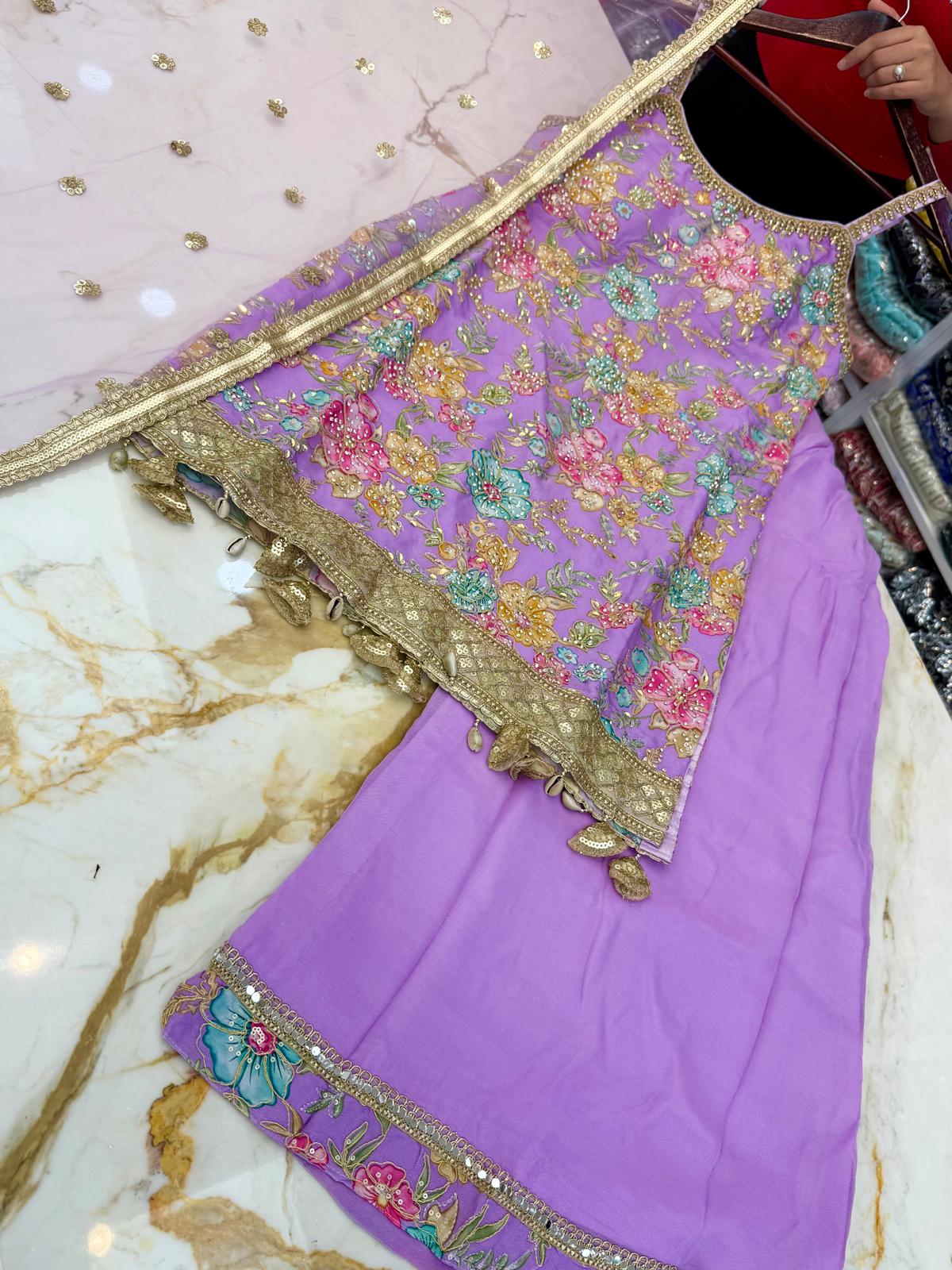 Designer Boutique Embroidered Strap Style Sharara Suit - 4 Colors