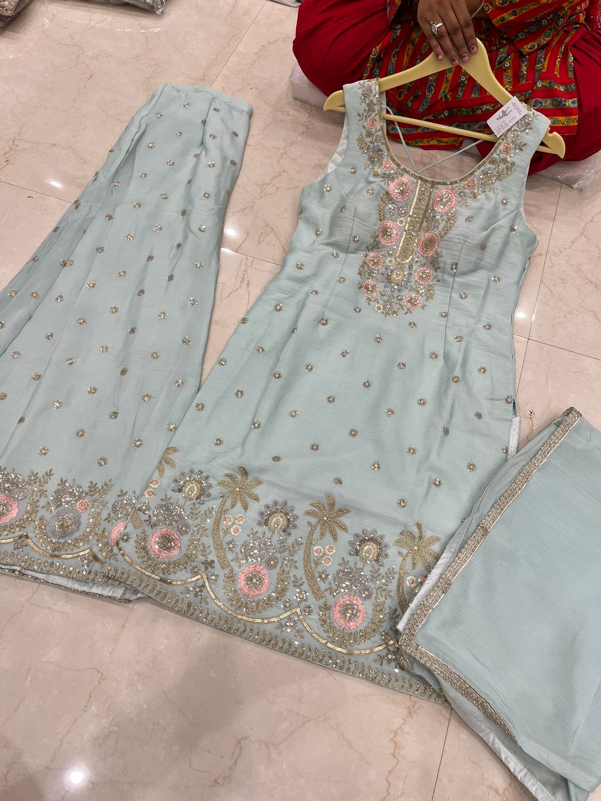 - Extravagant Boutique Embroidered Shirt with All Over Embroidered Palazo Bottom.