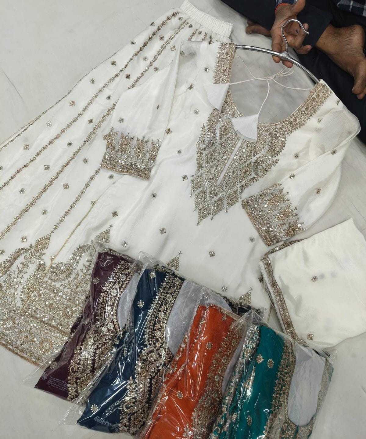 - Stunning Boutique Embroidered Full Sleeves Shirt with Heavy Embroidered Palazo Bottom.