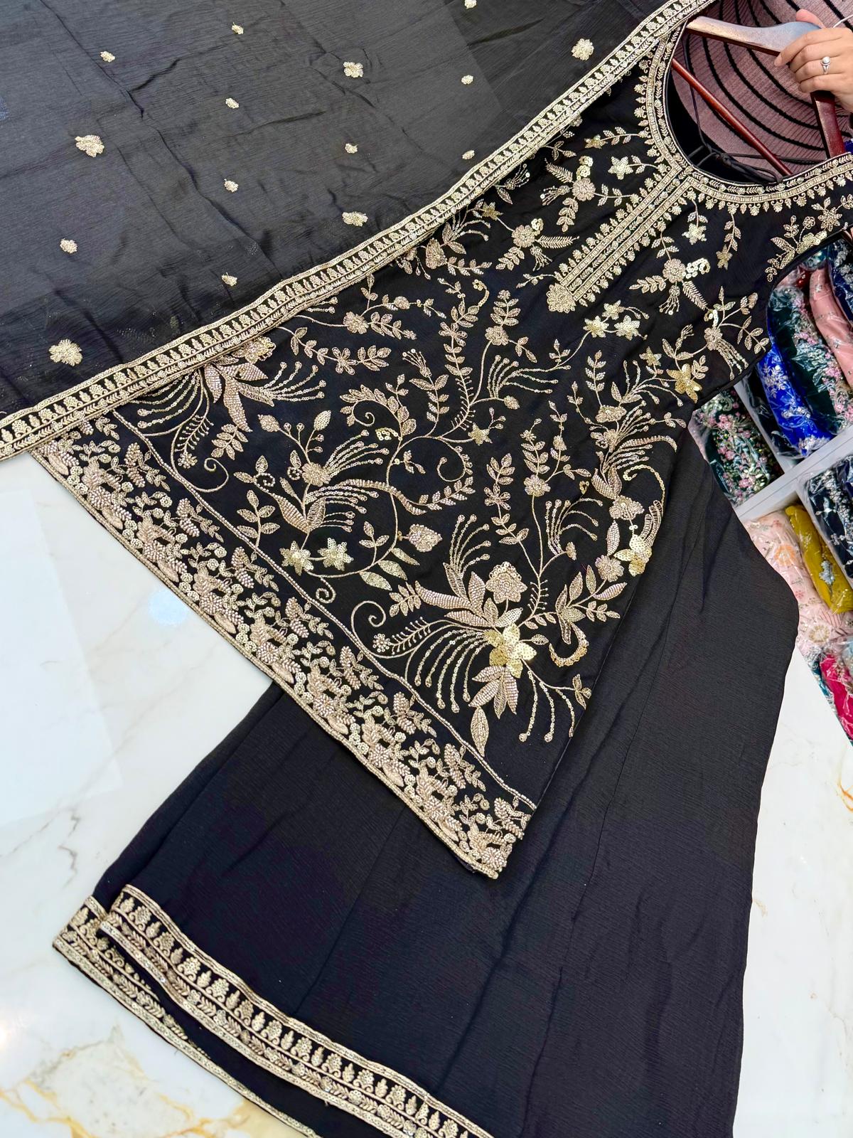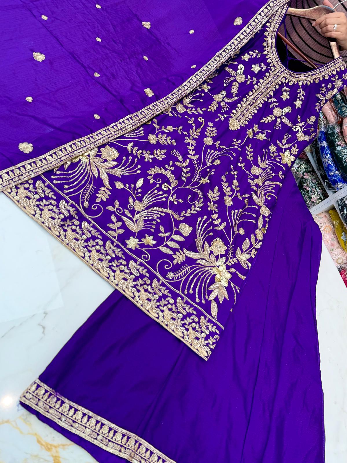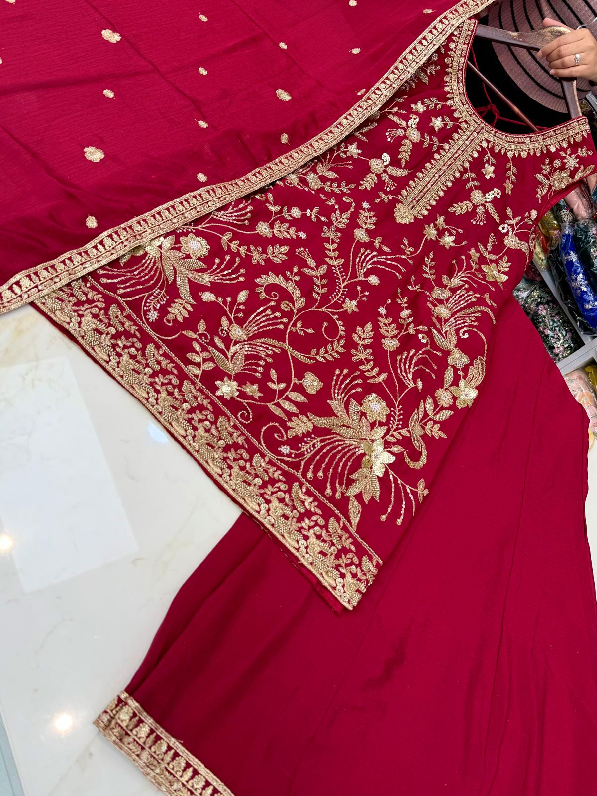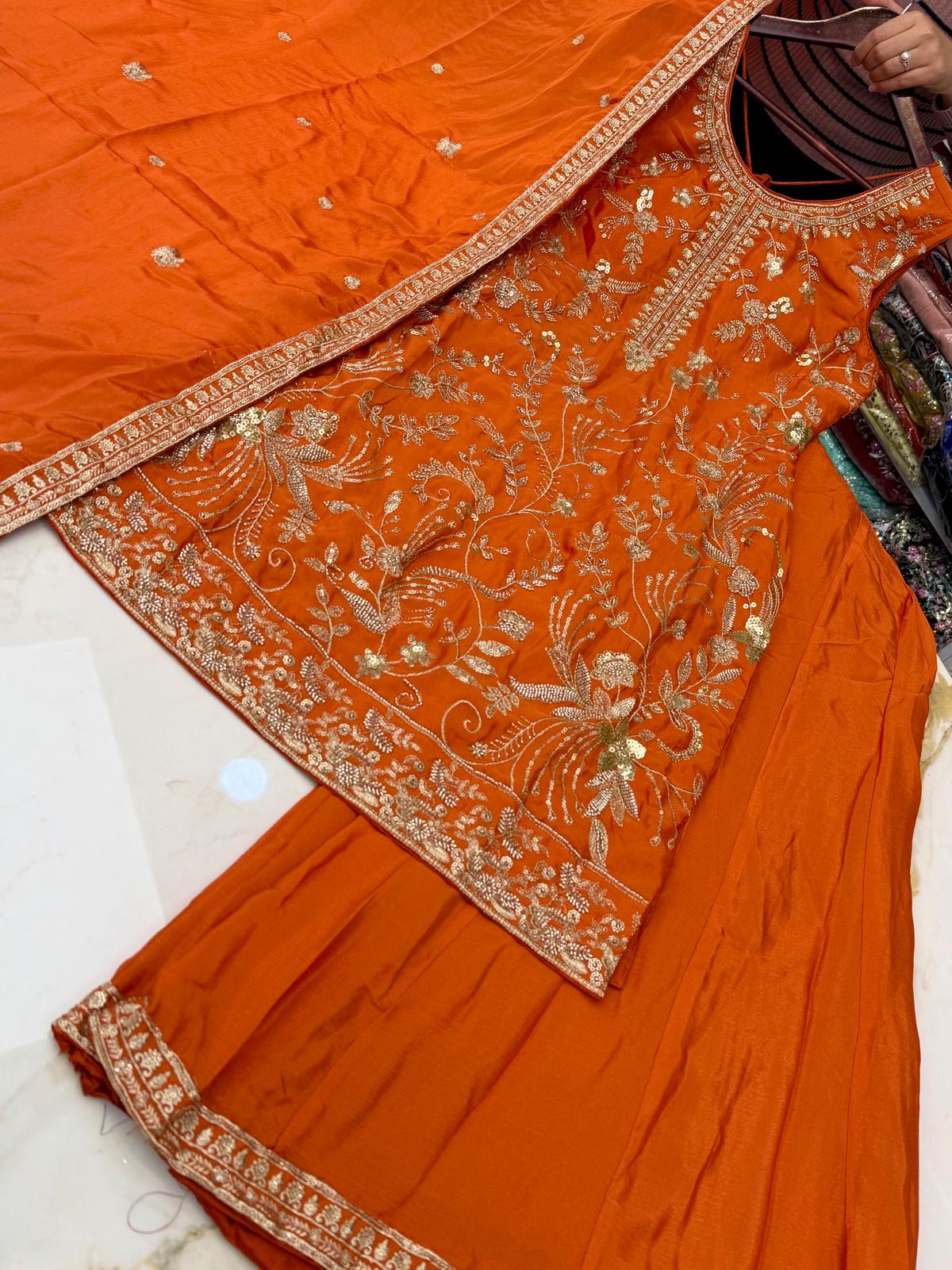 - Heavy Boutique Embroidered Shirt with Embroidered Palazo Bottom.