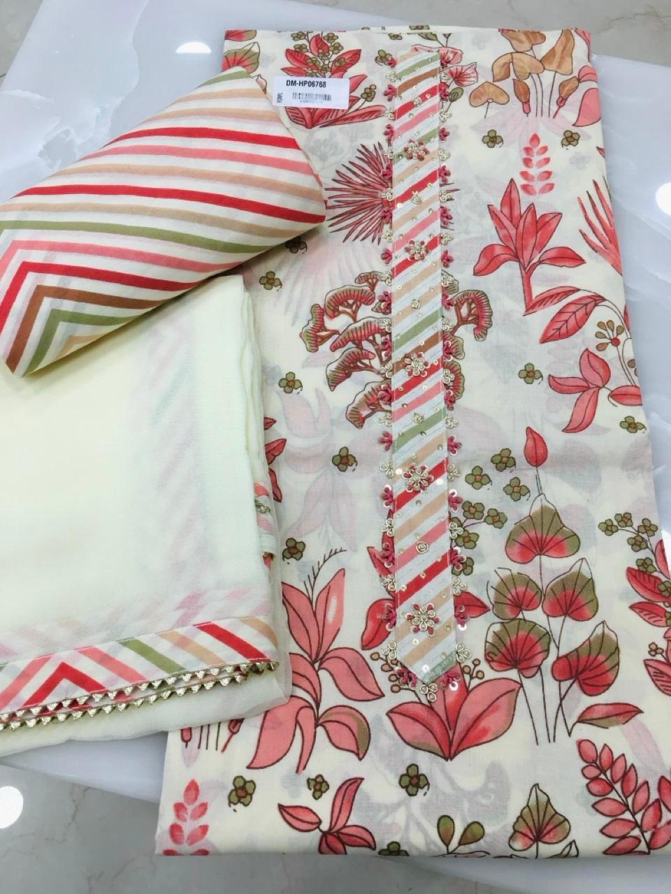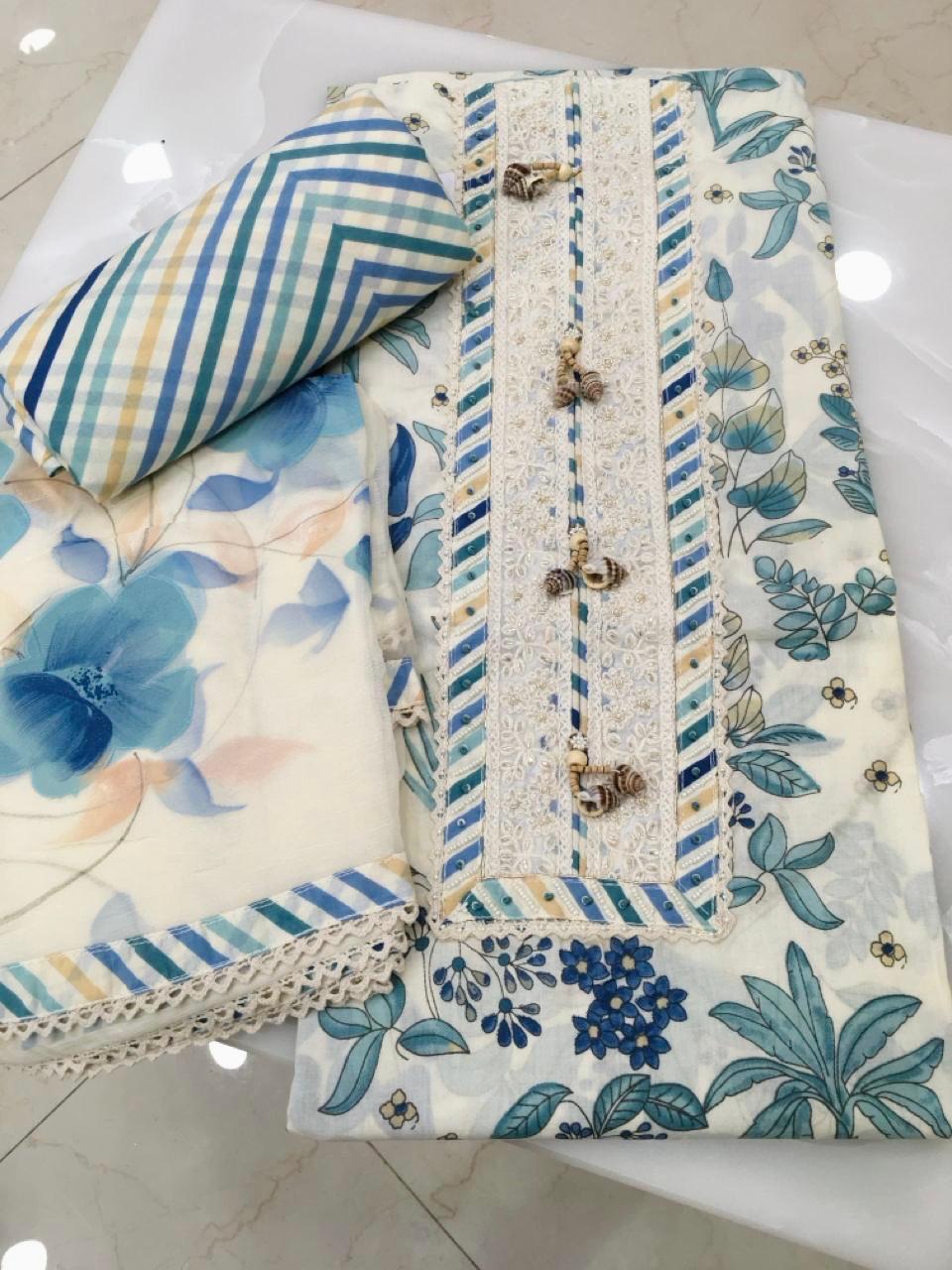 Beautiful Firozi Blue Floral Print Cotton Unstitched Suit - 2 Colors