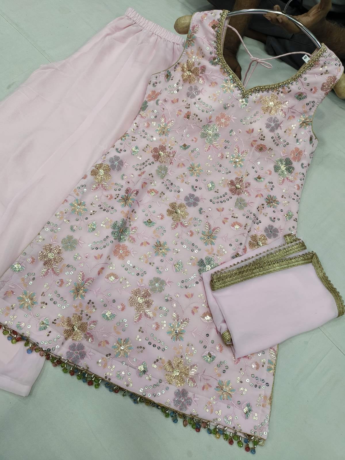 Beautiful Multi Color Embroidered Sharara Suit - 5 Pastel Colors